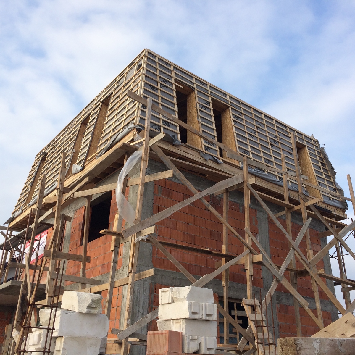 locuinta individuala P+2E, comuna Berceni, teren 450 mp. Gard beton 2.20 m inaltime, terase acoperite si descoperite 23 mp. Tabla 0,6 mm, tamplarie Rehau 5 camere gri, izolatii exterioare 10-30 cm.