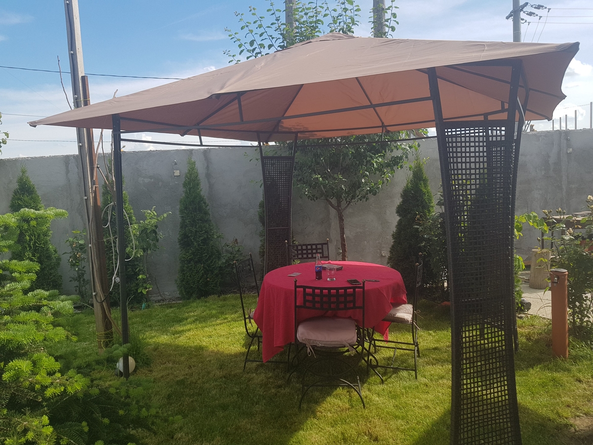 Etajul -mansarda este compus din 2 dormitoare complet mobilate si utilate, loc de depozitare tip dressing, camera tehnica si camera de relaxare. Incalzirea se face prin incalzire centralizata in pardoseala. In curte mai gasim constructie tip senvishpanel, pt depozitare , gradina fata si gradina spate amenajate cu pomi fructiferi, copaci ornamentali, trandafiri, si multe alte flori.