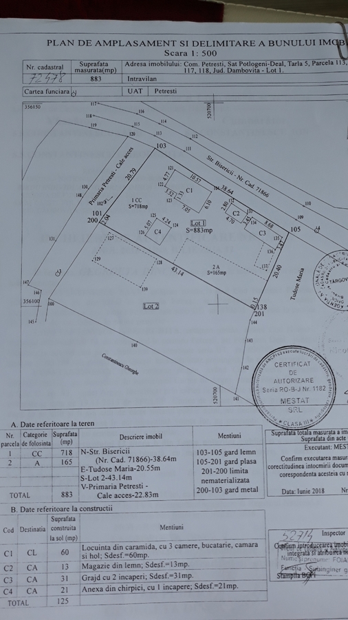 Comuna Petresti, sat Potlogeni Deal str. Bisericii