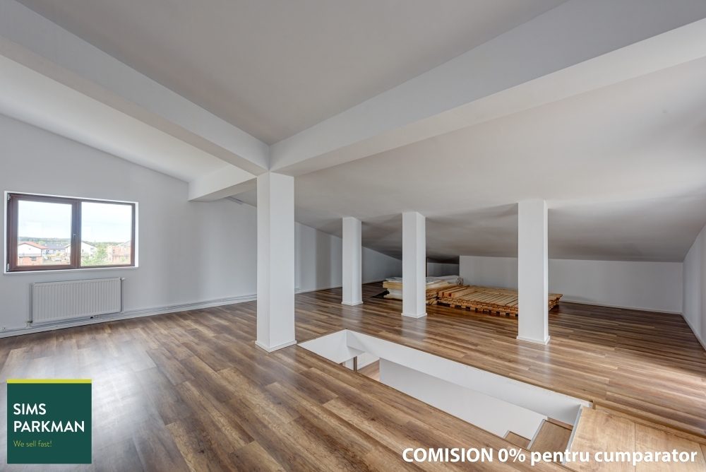 Mansarda open space de 73 mp poate fi folosita ca spatiu de recreere, camera media, camera de fitness sau compartimentata pentru alte dormitoare, in functie de necesitatile tale.