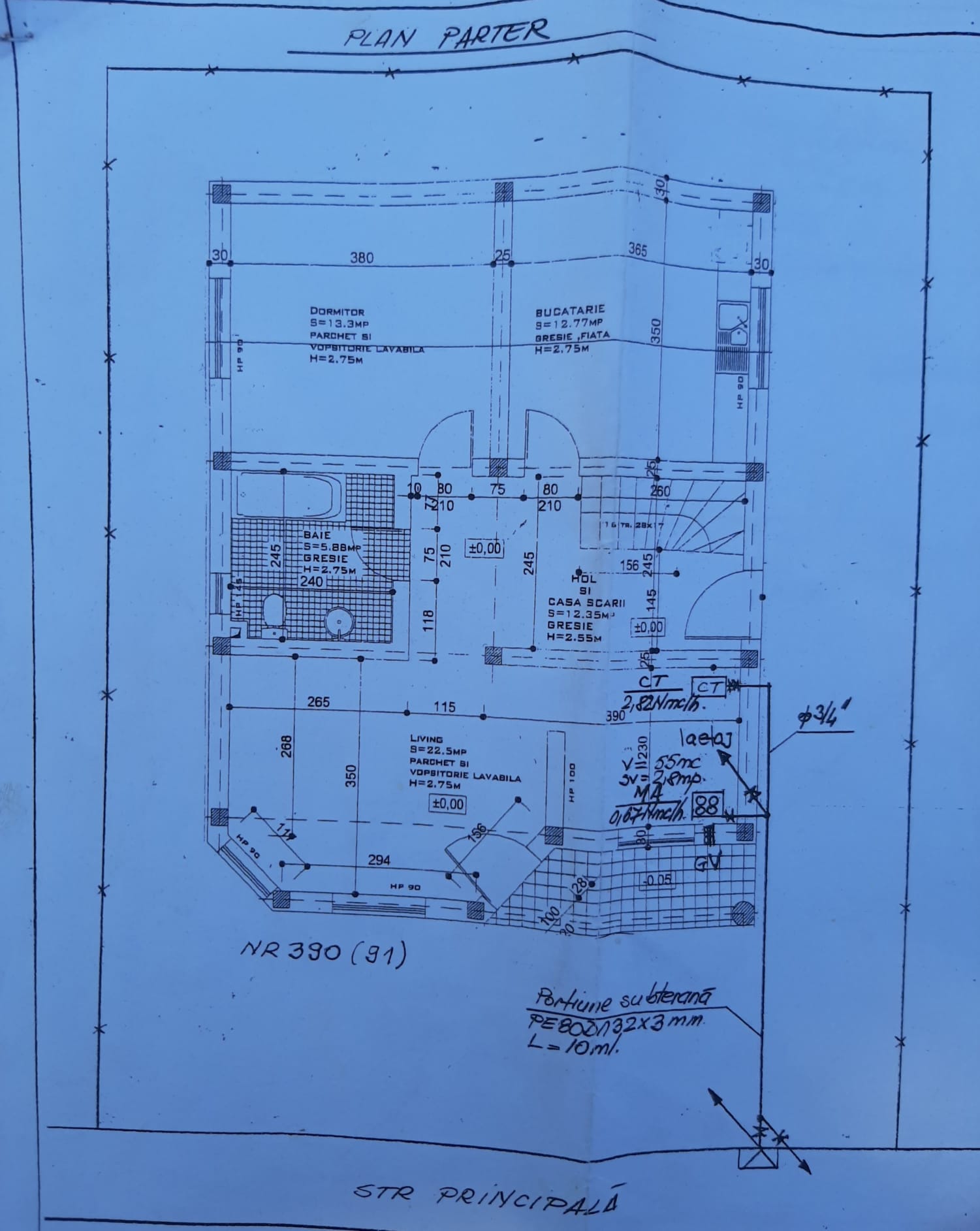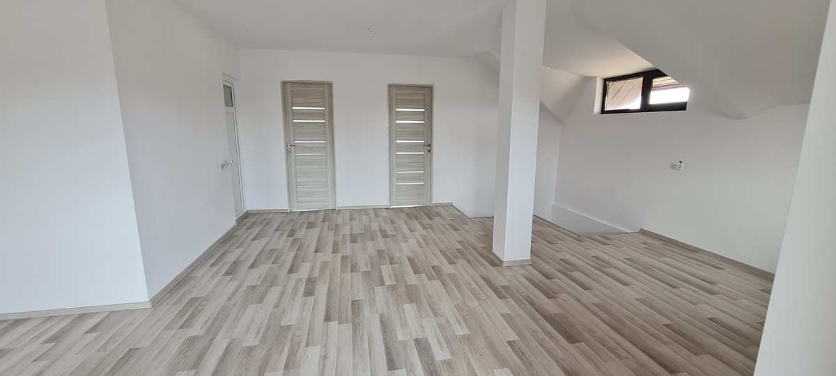 Parter - camera de zi de 23,60 mp; - baie de 5,85 mp; - hol si casa scari de 12,50 mp; - dormitor de 13,30 mp; - bucatarie de 12,75 mp. Etaj - Dormitor de 23,60 mp. - Dormitor de 13,30 mp. - Dormitor de 12,75 mp. - Baie de 5,85 mp. - hol de 12,50 mp.