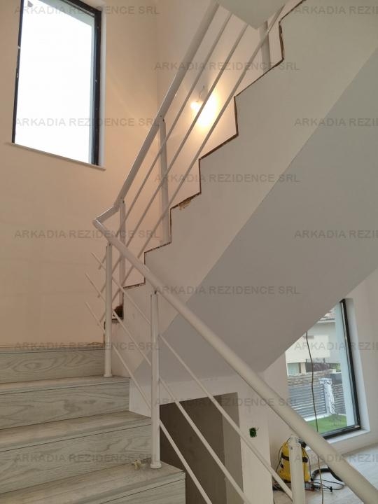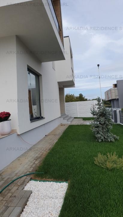 Va propunem spre vanzare un proiect de casa individuala in zona Corbeanca- Laguna Albastra, edificat pe un teren de 460mp cu vedere la lac. Vila se preda finisata la cheie, bransata la toate utilitatile. Gasesti in imediata vecinatate a imobilului, facilitati pentru o viata armonioasa: scoli si gradinite cu prestigiu (Scoala Americana, Cambridge, Scoala Mark Twain SI Olga Gudynn), dar si shopping-centers (Baneasa Shopping City), centre commerciale (Lidl si Mega Image) si mijloace de transport in comun, Aeroport Otopeni, gradina zoologica pentru independenta juniorilor tai. Proprietate dispune de 2 locuri de parcare, amplasate chiar in fata casei. Proprietatea are un amplsament ideal, ferit de traficul auto si cu o vedere libera catre lac. Casa este construita in regim P+1, compartimentata astfel; Parterul este compus dintr-un living spatios si extrem de luminos, spatiul ideal unde familia impartaseste momente magice impreuna. In zona de luat masa, cina in familie sau masa cu prietenii, se traiesc cu intensitate si bucurie. Bucataria este versatila, si pliaza pe fiecare profil in parte. De asemenea, la parter se regaseste si un birou, in cazul in care activitatea ta are nevoie de un spatiu in care sa te concentrezi. Aici se regasesc un spatiu tehnic, holul, grupul sanitar. Etajul unu este adaptat "spatiilor personale" si cuprinde cele 3 dormitoare individuale generoase, dotate cu bai si dressing,inaltimea camerelor 3m, unde fiecare membru al familiei se va bucura de spatiu personal. Vilela este construita pe structura: zidarie, caramida tip Porotherm de 30cm cu izolatie termica exterioara de 10cm. Tamplaria este Salamander, geam termoizolant tripan 6 camere pentru ferestre, usile culisante iesirea spre terasa. Un detaliu important sunt panourile solare ,hidroizolatiile si termoizolatiile la terase, precum si placarea teraselor in sistem flotant. Balustrada balcoanelor este din sticla laminata de 8.2.8mm, montat in profil aluminiu tip "U". Usa de la intrarea in casa este metalica. La interior, instalatiile termice cuprind incalzire in pardoseala sistem marca UPONOR Smart S - control 8 zone independente si distribuitoare etaje. Centrala termica este marca Ariston 30KW sau echivalent, Confortul termic este obtinut si datorita sistemului de in in pardoseala sistem marca UPONOR Smart S - control si distribuitoare etaje. Confortul termic este obtinut si datorita sistemului de incalzire prin pardoseala, pe fiecare etaj. Incalzirea si apa calda menajera sunt asigurate de centrala termica proprie.Sistemul de fundare este realizat din fundatii continue din beton armat , stalpi si pereti.