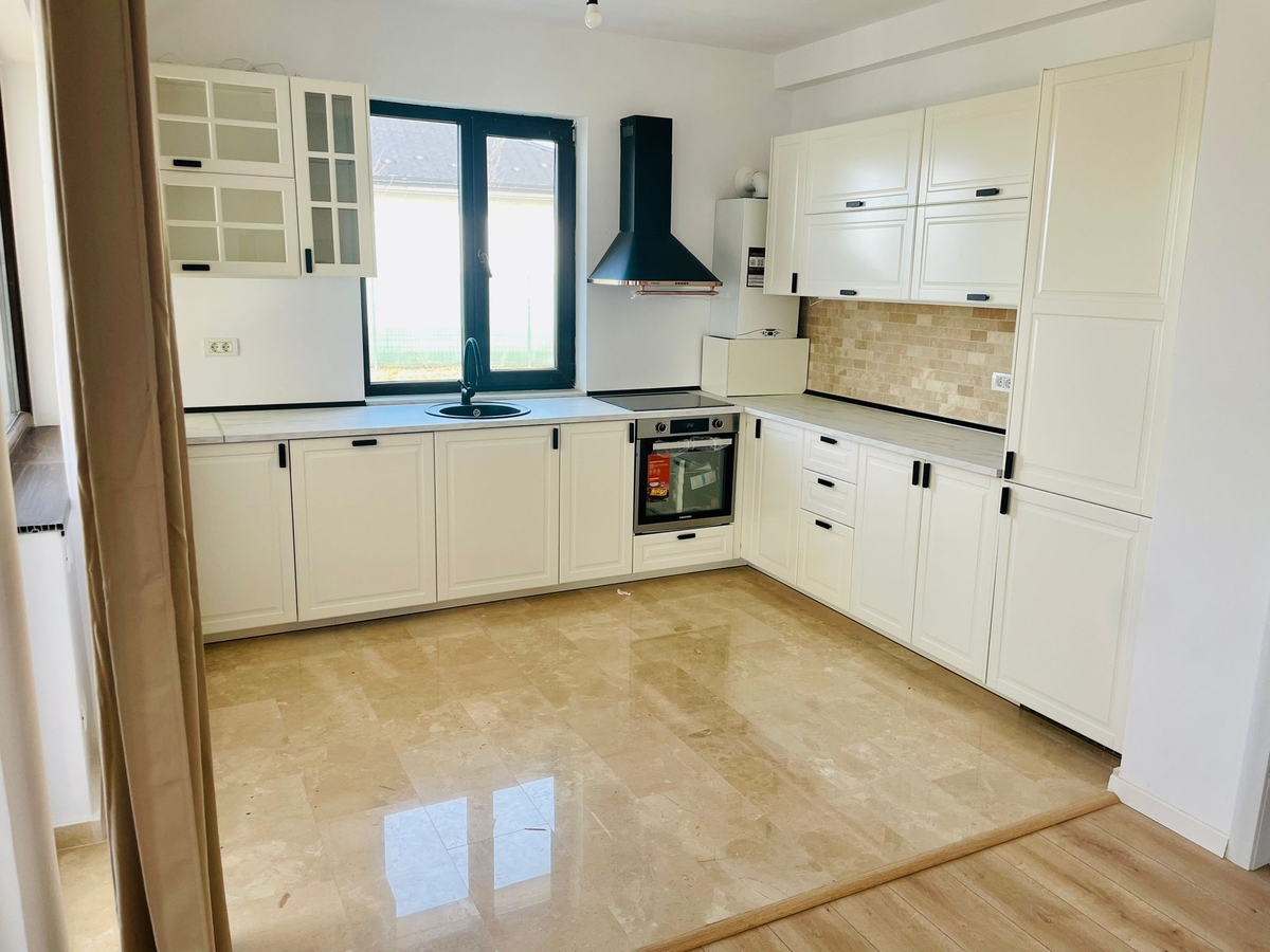 o casa in afara orasului la pretul unui apartament in Bucuresti. Casa dumneavoastra noua in cartier rezidential Natural Residence 3, la pretul de 165000 euro TVA inclus. Un cartier organizat la 13 km de Bucuresti cu o infrastructura adecvata, drumuri asfaltate si acces rapid catre Bucuresti prin DN1. Luxul de a detine casa personala este acum disponibil. Facilitatile cartierului: drumuri asfaltate, utilitati individuale, curent, gaz, apa, parculet pt. copii amenajat, acces imediat catre magazine Mega Image, Penny, Mc Donald`s, Hornbach, DN1 Value Center. Zona verde, padurea Tamasi la 1 km distanta, cartier inchis cu acces securizat. Facilitatile locuintei: structura rezistenta beton, caramida, suprafata, 96 mp utili, tigla metalica Durra de culoare gri, camere inalte 290 cm, tencuiala glet, vopsea lavabila, alba, vopsea structurata exerior Caparol, 20 mp terasa acoperita. Tamplarie PVC 6 camere si geamuri tripan, usa metalica exterior gama Tracia, marmura travertin intrare si terasa, teren, 500 mp, constructie, 2023, 3 dormitoare 1 dormitor matrimonial cu baie proprie, 2 bai, living, bucatarie.Izolata cu polistiren de 10 cm exterior, compartimentari interioare din caramida Porotherm 11.5 cm tencuita.Casa este mobilata si utilata complet. Acte la zi. Vanzarea se face direct cu dezvoltatorul imobilului fara comision sau alte costuri. Pret TVA inclus. Accept schimb. Direct dezvoltator. Pentru alte informatii va stau la dispozitie: Iordan Solomon