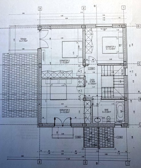 Mansarda: 3 dormitoare, 2 terase, 1 baie.