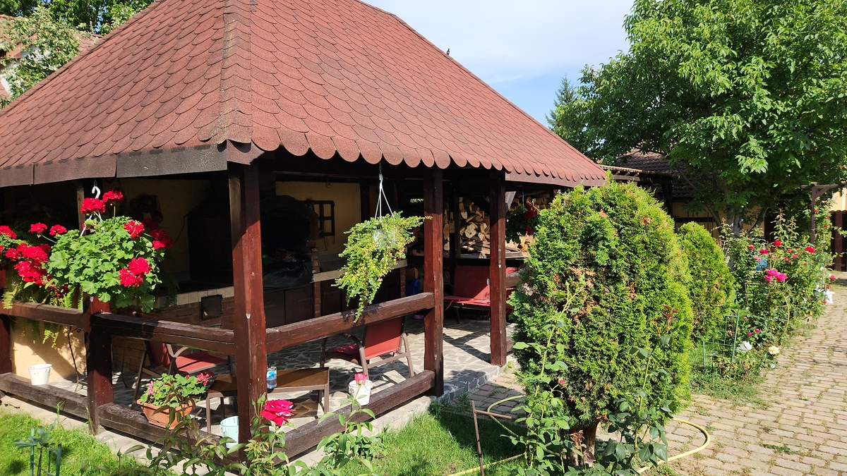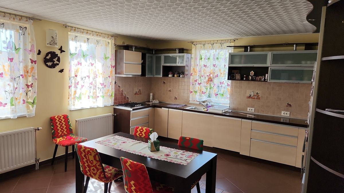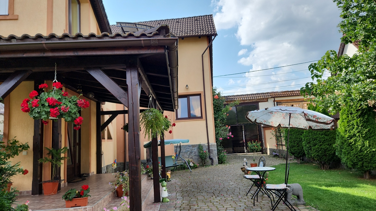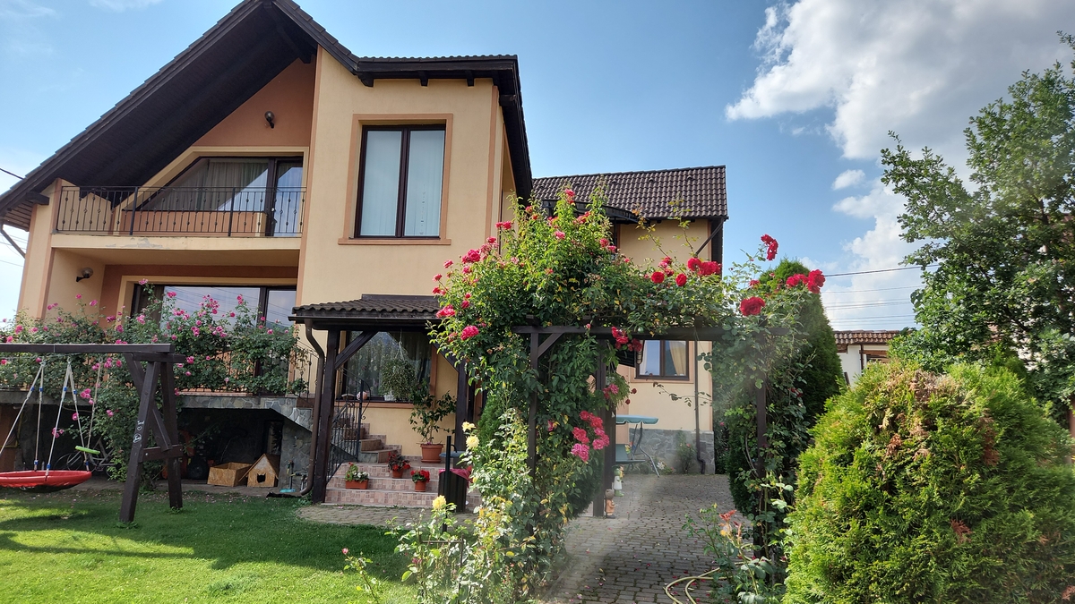 proprietatea dispune de 4 dormitoare cu baie proprie, living, bucatarie, birou, baie servici, spatiu tehnic, camera servicii, crama si beci dispune de toate utilitatile incalzirea in sistem centralizat pe gaz sau lemn. Proprietate cu acces la 2 strazi avand o anexa de cca 90 mp la sol parter (centru comercial) etaj cca 80 mp apartament cu 2 camere. Locatia este amplasata ultracentral la aprox. 5 min. de Orasul Brasov, 7 min. de aeroportul Ghimbav, 15 min. de Poiana Brasov, 15 min. de statiunea Bran. Locatia poate fi oricand transformata in pensiune,