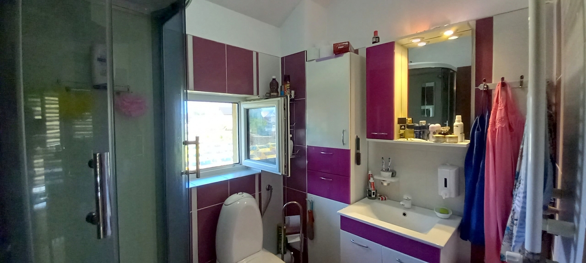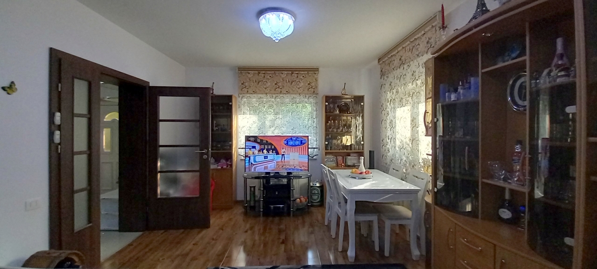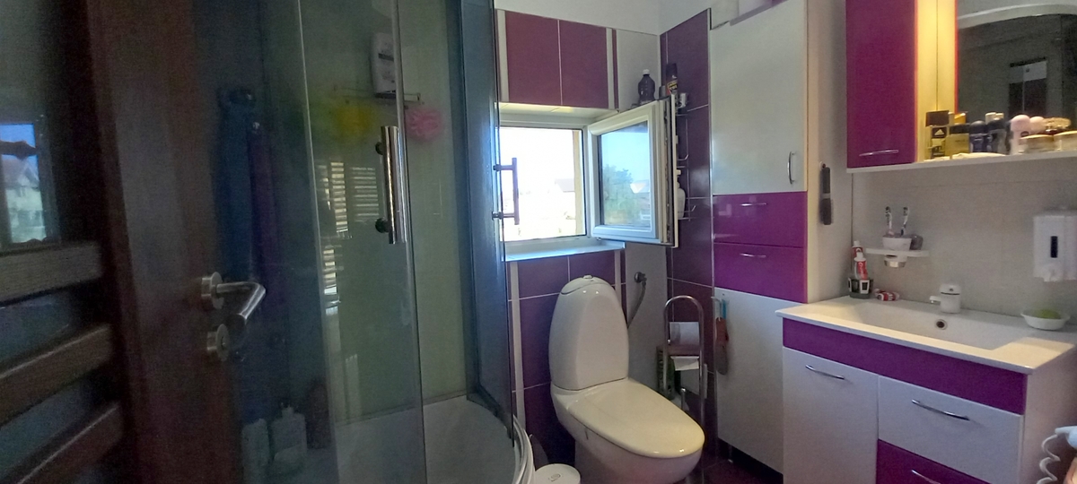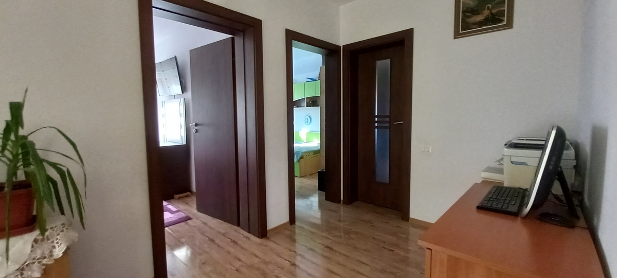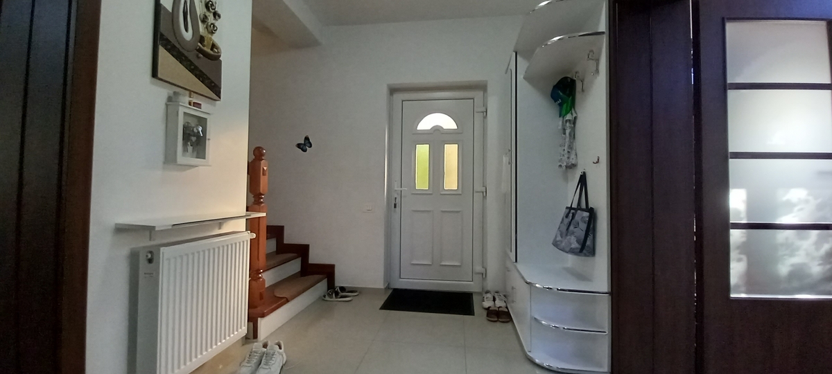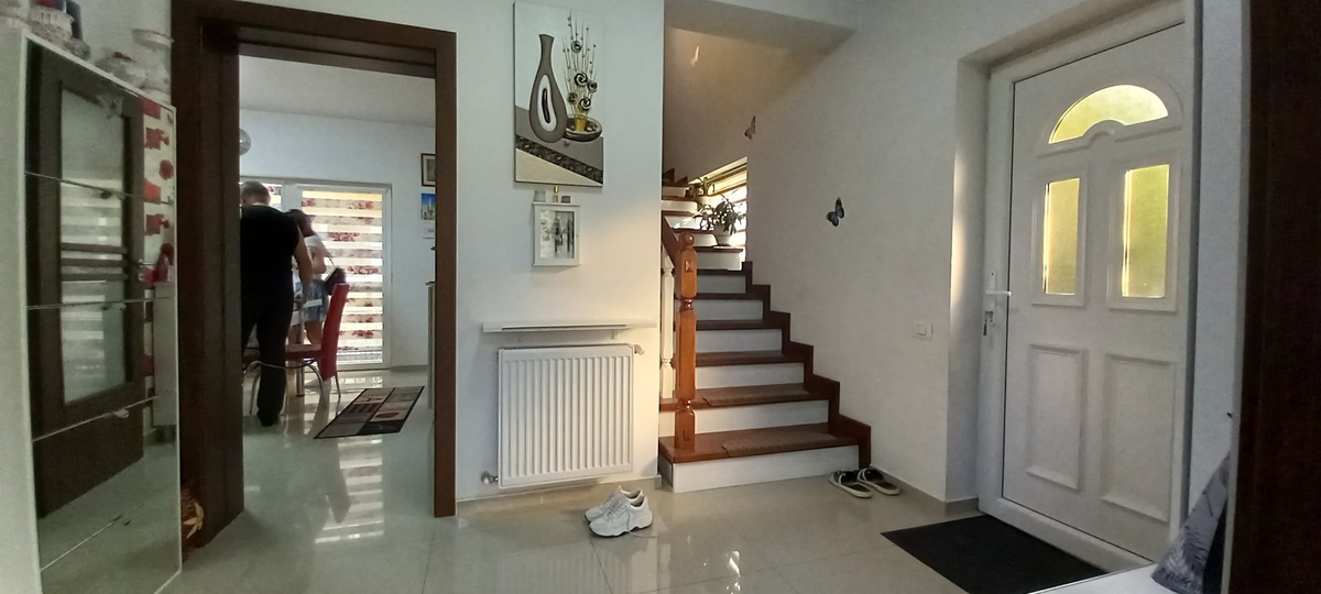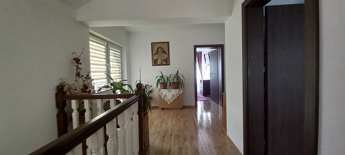 Constructie solida din caramida, exploatata si intretinuta excelent, interiorul este structurat/impartit in camere spatioase, accesate dintr-un hol amplu, bine proportionat, toate camerele sunt decomandate iar bucataria este inchisa. Accesul catre etaj se face pe scara bine dimensionata, structura si forma acesteia asigurand un acces facil chiar si pentru copii (trepte, mana curenta din lemn natur fara muchii ascutite sau colturi). Atat la parter cat si la etaj, proprietatea dispune de bai generoase, si spatii de depozitare.