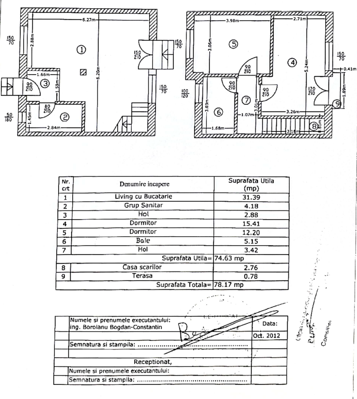 Living, bucatarie, spatiu birou, alimentare apa, canalizare, centrala termica, gaze, izolatie termica, 2 dormitoare, pod, scari, 2 grupuri sanitare