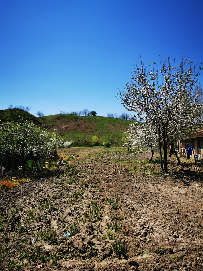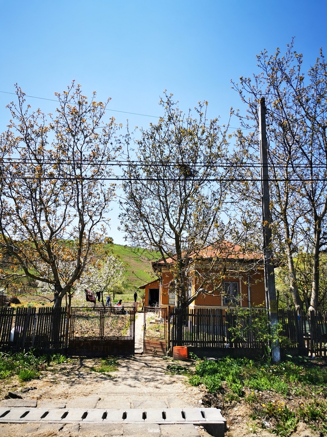 In spatele curtii se afla un deal plantat cu vita de vie.
