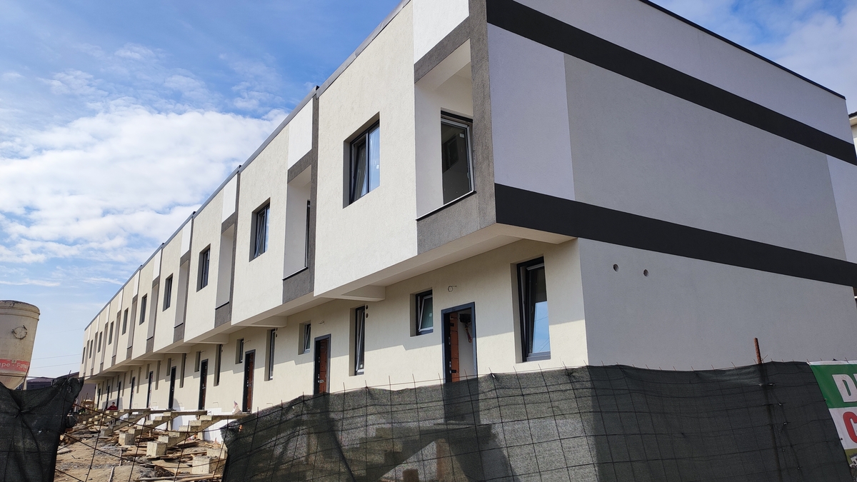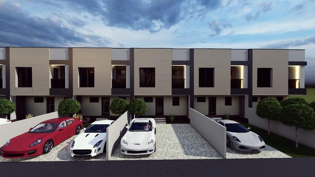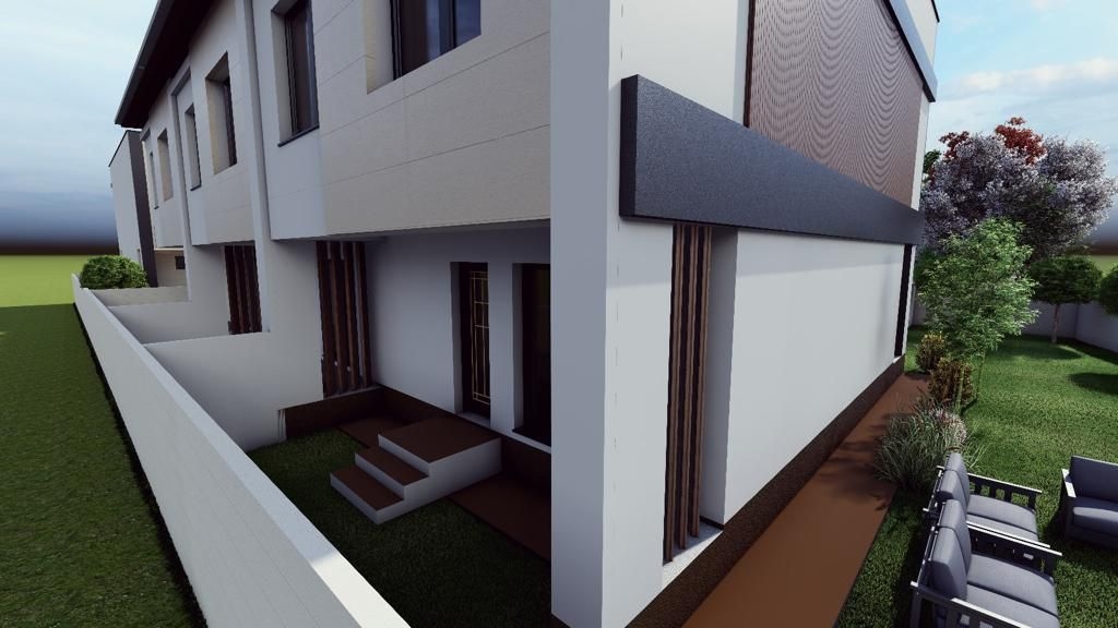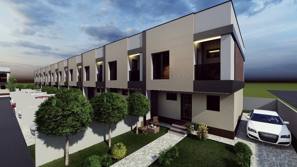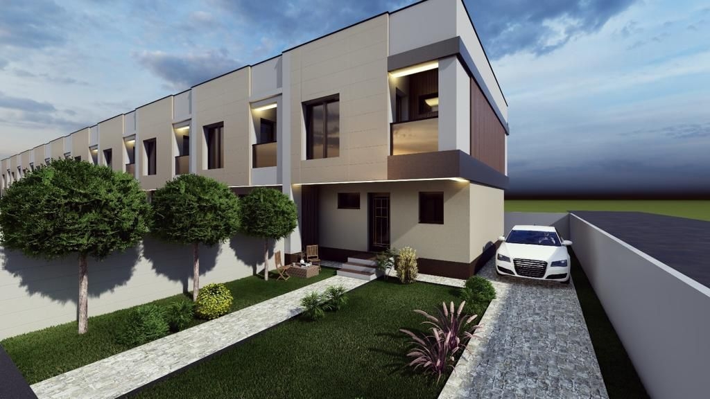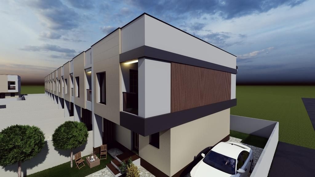 Case de vanzare insiruite P+E teren 200 mp, casa amprenta 60 mp pret 130.000 e cu TVA la cheie, toate utilitatile: P - living, baie, bucatarie. Cu 3 dormitoare 1 baie; curte, loc parcare