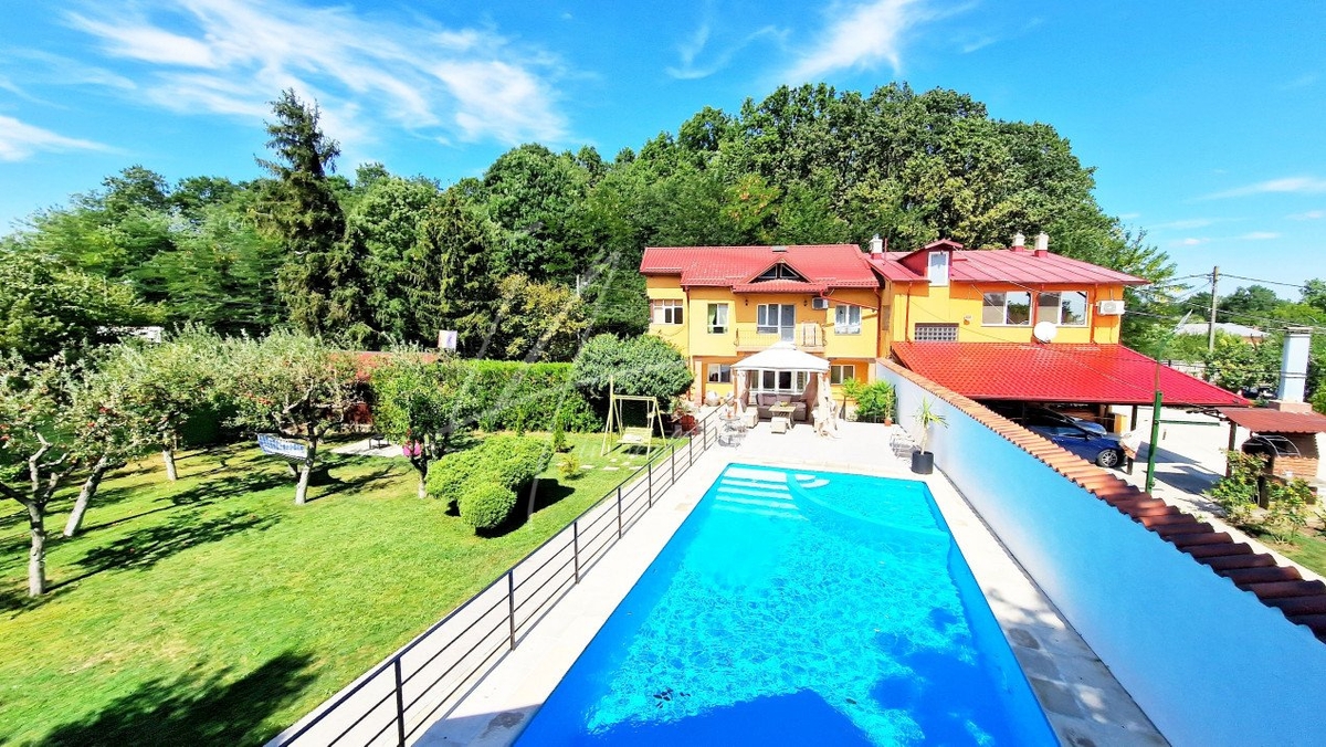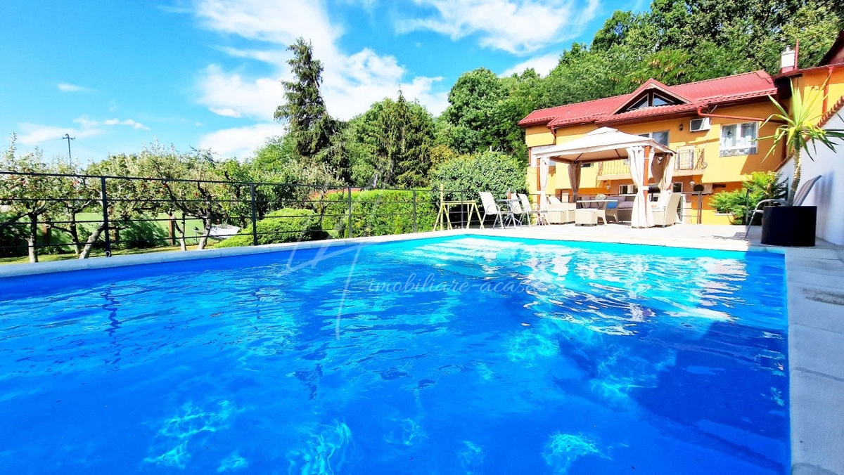 Mi-ar fi placut sa-ti prezint si sa cumperi proprietatea asta spre final de primavara ca sa te bucuri de tot ce ofera ea: o casa de oaspeti in care sa-ti gazduiesti prietenii, o gradina imensa cu meri, foisor, terasa, multe locuri de parcare, loc de joaca pentru copii. Dar pe langa casa principala, piesa de rezistenta este piscina cu apa precum cristalul de pe langa insulele grecesti, alaturi de care se gaseste amplasat un pavilion cu canapele confortabile in care iti poti servi bautura preferata dupa o balaceala racoritoare.