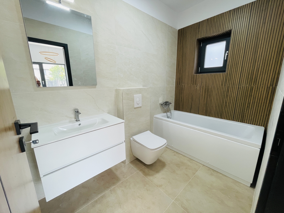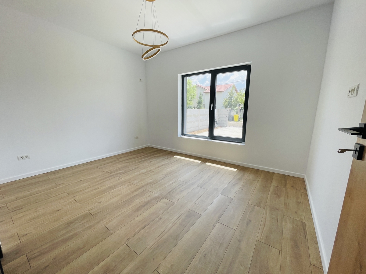 Casa se predau la cheie cu finisajele complete (gresie, parchet, sanitare, usi, incalzire prin calorifere, centrala) cu utilitati: apa, canal, gaze, curent. Geamuri tripan, placa peste etaj, alei betonate, terasa acoperita, incalzire in pardoseala. Casele sunt construite din caramida de 30 cm cu izolatie conform normativelor pentru clasa energetica A. 140 m construiti / 120 m utili / 428 m teren / strada de 11 m latime. 3 dormitoare / 2 bai / bucatarie inchisa sau deschisa.