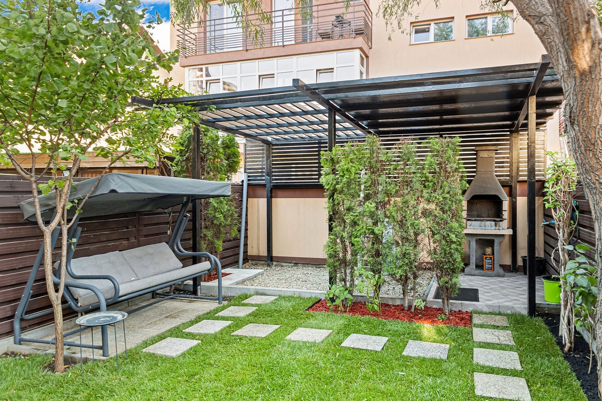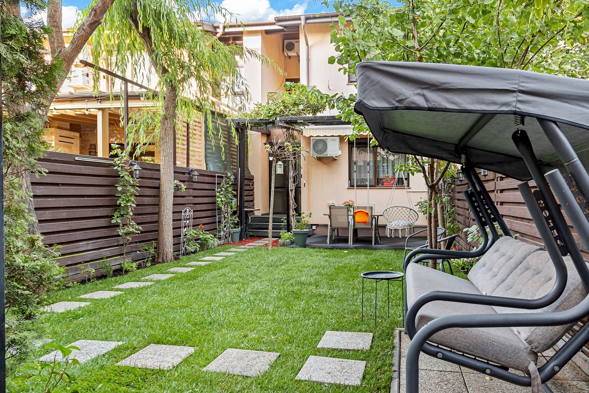 • Gradina frumos amenajata, cu terasa pentru relaxare, balansoar, gratar si sistem de irigare automat.