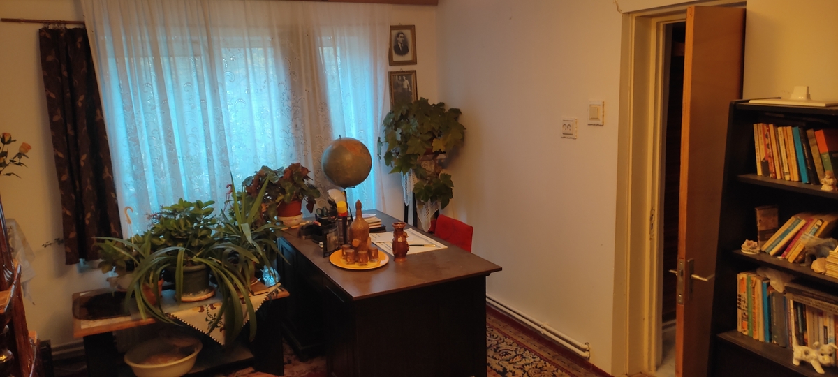 Casa este pe un singur nivel, are 83 mp si este compusa din doua dormitoare, living, bucatarie, baie si terasa exterioara. Are toate utilitatile necesare unui trai modern(gaze, apa curenta, electricitate). Cu toate ca are incalzire centralizata(centrala pe gaze), au fost pastrate si sobele de teracota care sunt perfect functionale. In curte exista si un put cu hidrofor(pentru udat gradina si in cazul in care sunt probleme cu alimentarea de la retea).