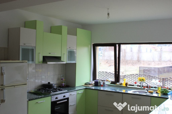 Se vinde cu dressing, bucatarie mobilata si utilata,masina de spalat si uscator rufe,totul absolut nou,Centrala termica Ariston,acoperis tigla.Casa este mansardabila.