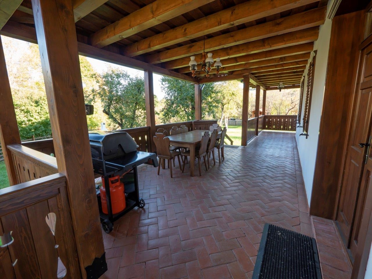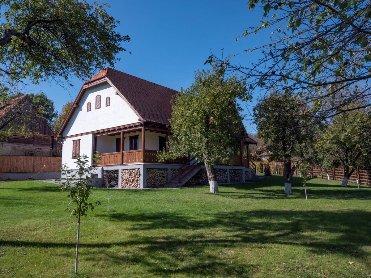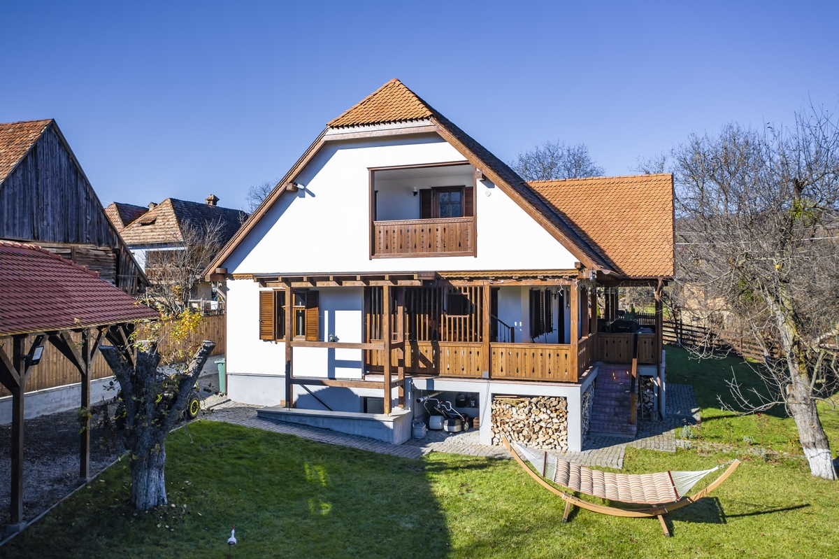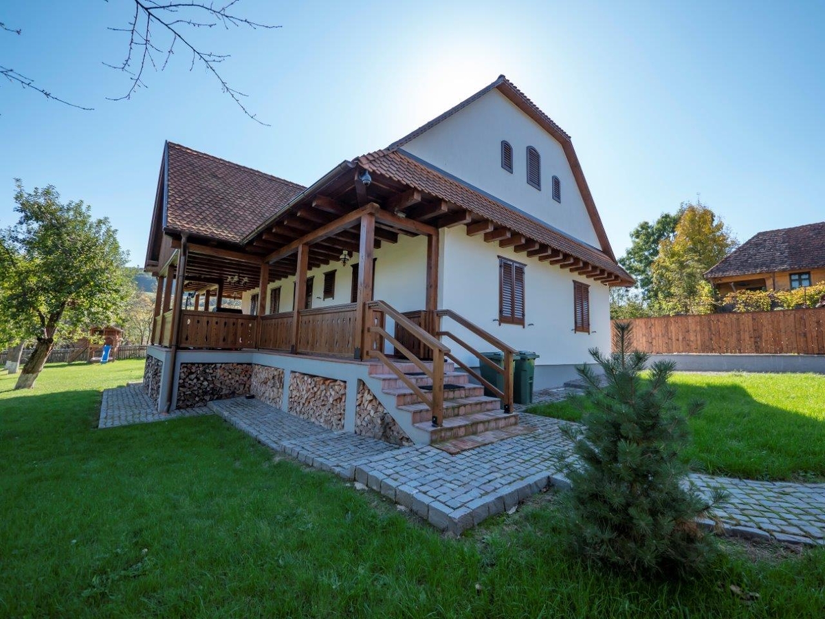Va oferim o oportunitate unica de a cumpara o casa in stil traditional, amplasata intr-o zona pitoreasca din Harghita-Dobeni. Aceasta proprietate se afla pe colinele salbatice ale tinutului secuiesc si are diverse facilitati precum un spatiu de joaca pentru copii, un foisor, o casuta de gradina din lemn suspendata (incalzita si luminata in interior), un ciubar cu sauna, un gratar rustic de gradina si un gratar electric.
