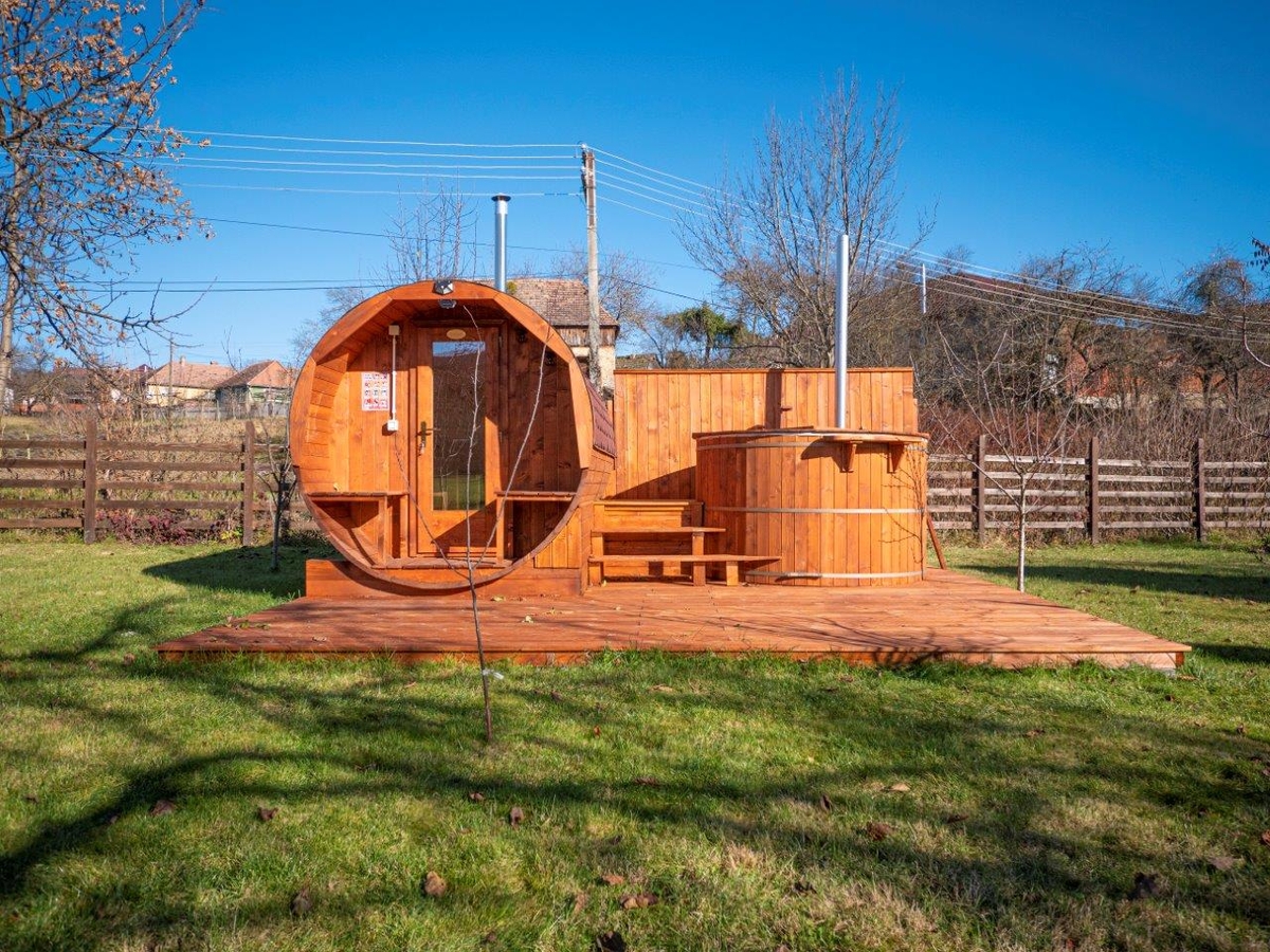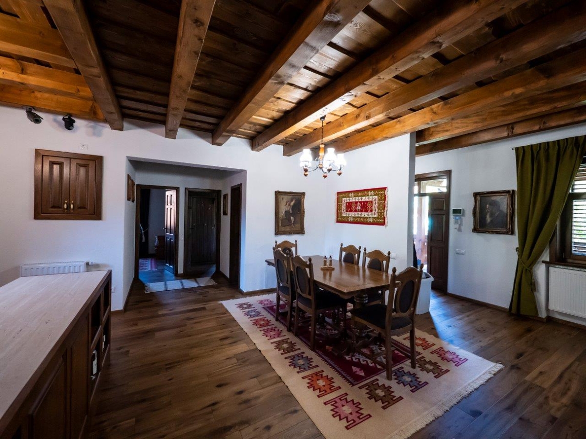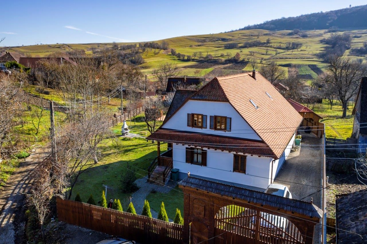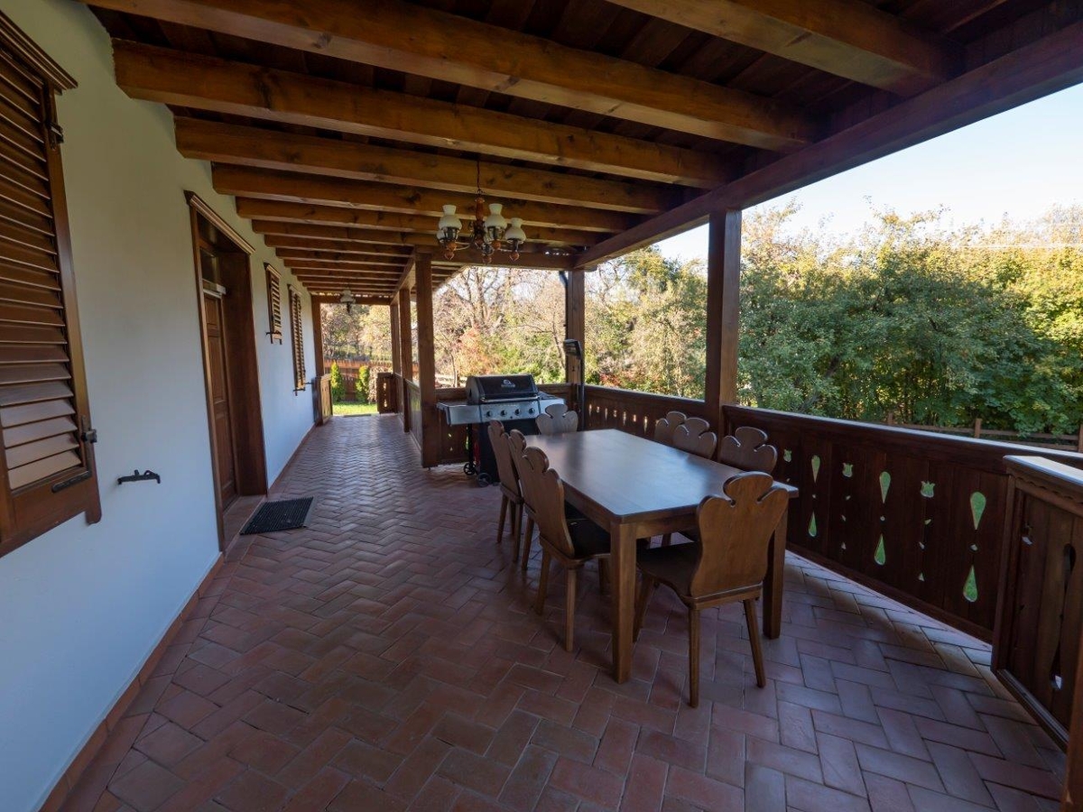 Va oferim o oportunitate unica de a cumpara o casa in stil traditional, amplasata intr-o zona pitoreasca din Harghita-Dobeni. Aceasta proprietate se afla pe colinele salbatice ale tinutului secuiesc si are diverse facilitati precum un spatiu de joaca pentru copii, un foisor, o casuta de gradina din lemn suspendata (incalzita si luminata in interior), un ciubar cu sauna, un gratar rustic de gradina si un gratar electric.