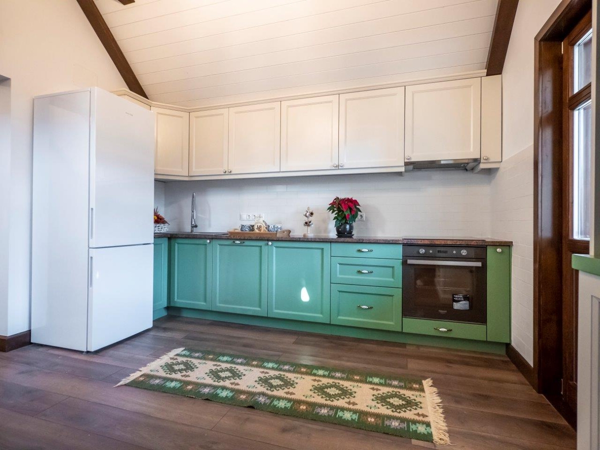 Parterul este amenajat cu un living spatios, care include o canapea extensibila si o zona de luat masa, oferind suficient spatiu pentru relaxare si socializare. Exista, de asemenea, o zona de joaca pentru copii, unde cei mici se pot distra in voie.