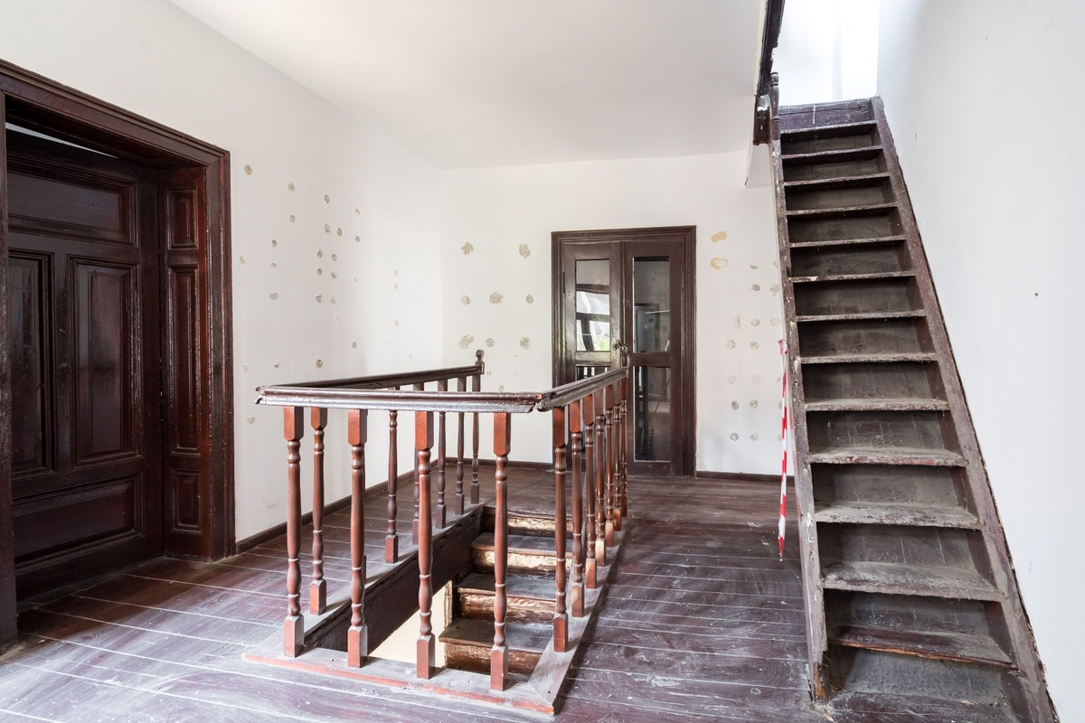 ⦁ Corpul de casa C2 (grajdul cu turnul ascutit) necesita consolidare (cu demontarea acoperisului si planseului vechi si montarea altora noi in forma originala).