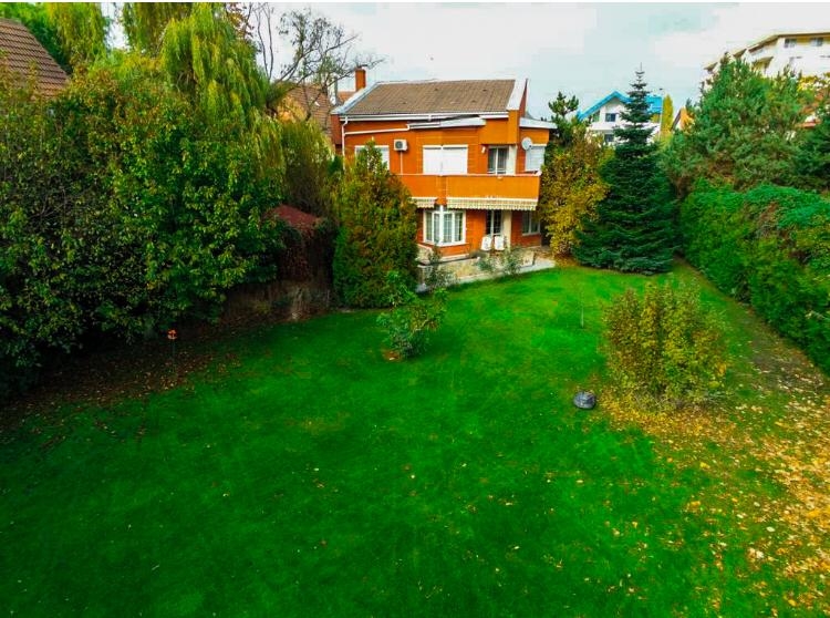 Curtea este imensa are 1600 mp se poate amenaja chiar un teren tenis pentru pasionati si piscina. Curtea din fata este betonata si asfaltata si e locul de joaca a celor 2 caini ai familiei, si locuri de parcate fara deranj 4 locuri, despartita printr-un gard de lemn de gradina pentru protectia celor 2 pisi ale proprietarilor. In curtea din spate este amenajata o gradina matura exceptionala, cu o flora ce cuprinde zeci de specii de arbusti rari, cateva specii de brazi maturi, inclusiv brad argintiu, copaci fructiferi care dau rod de ani buni, specii trandafiri si plante multianuale rare si un gazon impecabil. Amenajarea acestui landsaft si aceastei flore in zilele noastre costa putin peste 50 000 euro, pentru cei care nu cunosc, nu mai vorbim de timpul care trebuie sa treaca pentru a beneficia de aceasta superba curte, nu e cazul nostru o aveti la pachet cu vila doar sa va bucurati de frumusetea ei. Este dotata cu aspresoare Hunter cele mai bune aspresoare folosite la terenuri de fotbal, avand amortizoare, alimentate dintr-un put propriu.