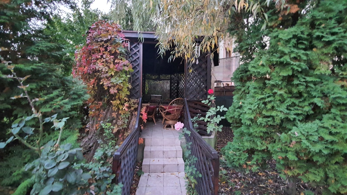Foisorul din lemn este imediat langa vila dar in acelasi timp in gradina, este dotat cu o masa dubla si fotolii din lemn de ratan cu blat de sticla securizata, pentru 6-8 persoane. Foisorul are un sistem de ventilatie, si vapori cu apa, inclusiv sisteme anti-tantari, si cablu tv, inclusiv toata terasa este echipata la fel cu sisteme de racire cu vapori de apa, inclusive terasa are 2 copertine cu telecomanda.