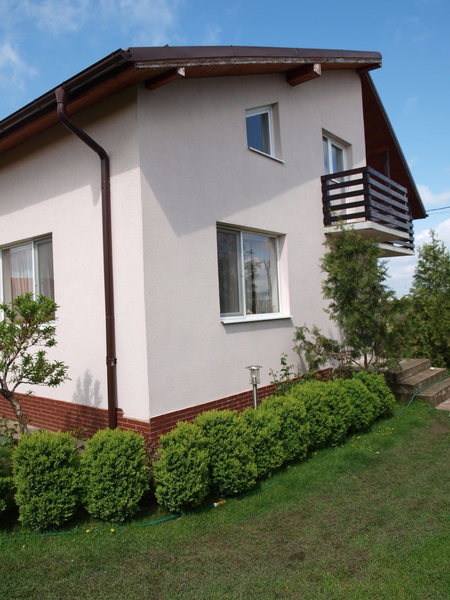 vila, 25 km de Bucuresti zona de vile langa lacuri, str. Brebenei, partial finisata, parter plus mansarda, trei dormitoare, living, 3 balcoane, o baie la mansarda, dormitor plus living.