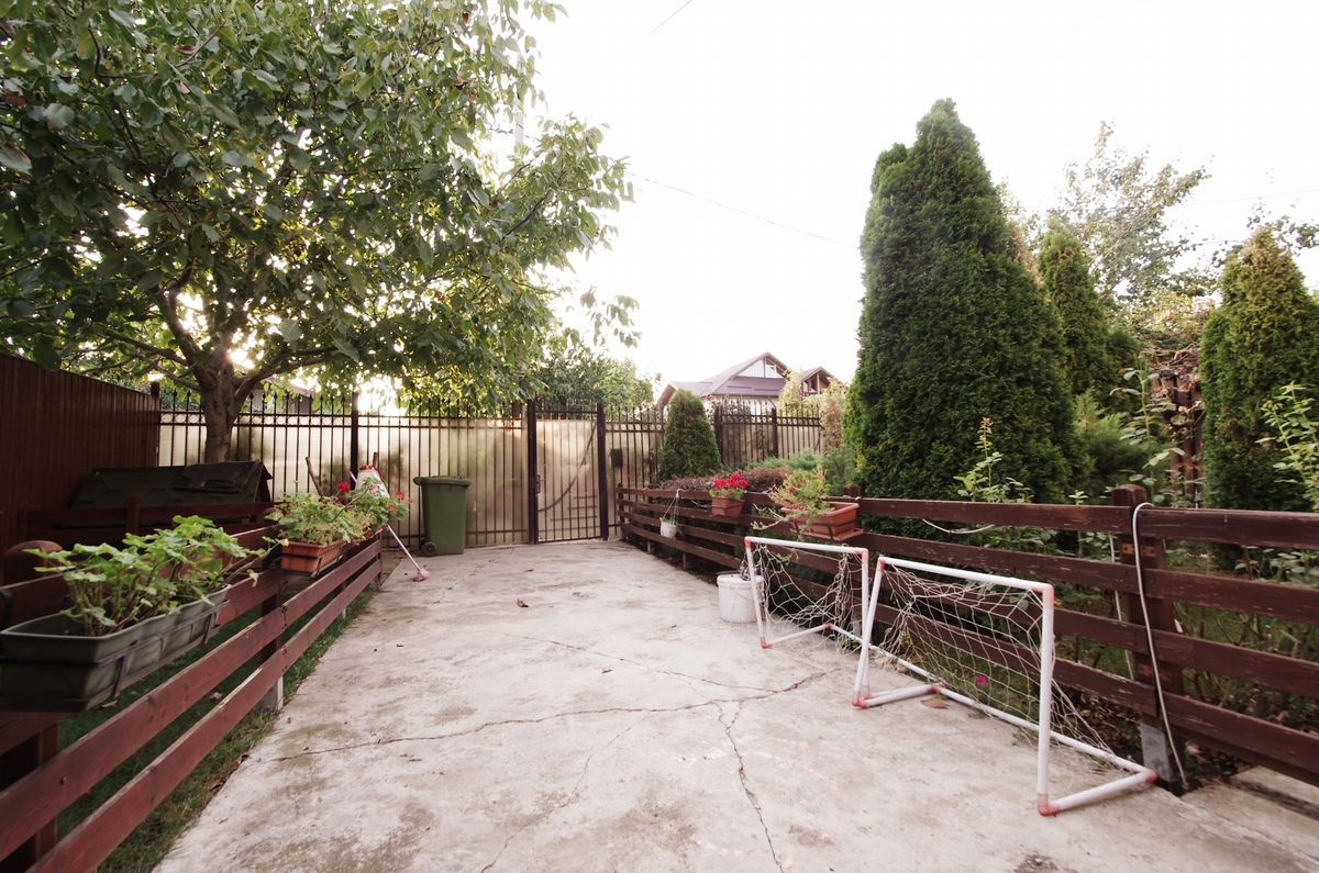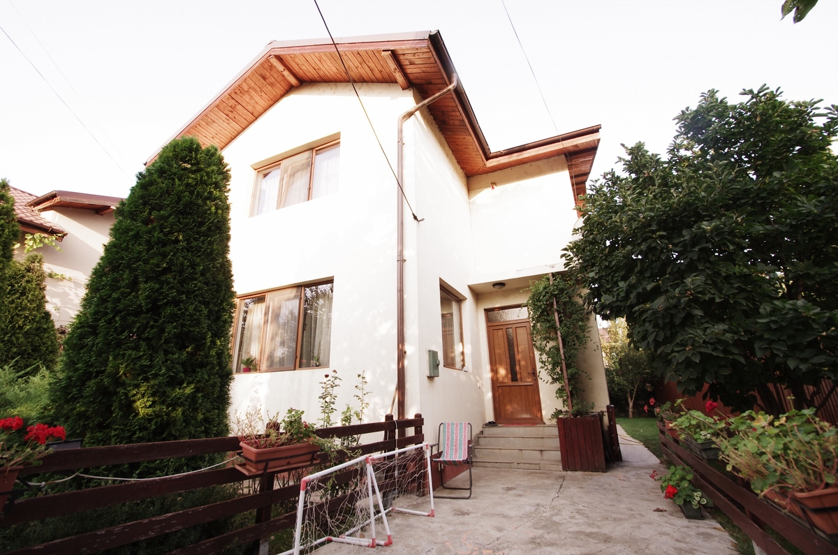 vila individuala, structura tip AMVIC, P+1+Pod, finisata la cheie, teren 336 mp, 160 mp utili, 5 camere, 3 bai, terasa, utilitati (gaz, curent), statii RATB la 300 m. Pret: 110.000 euro, comision 0.