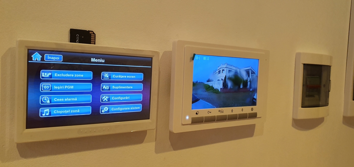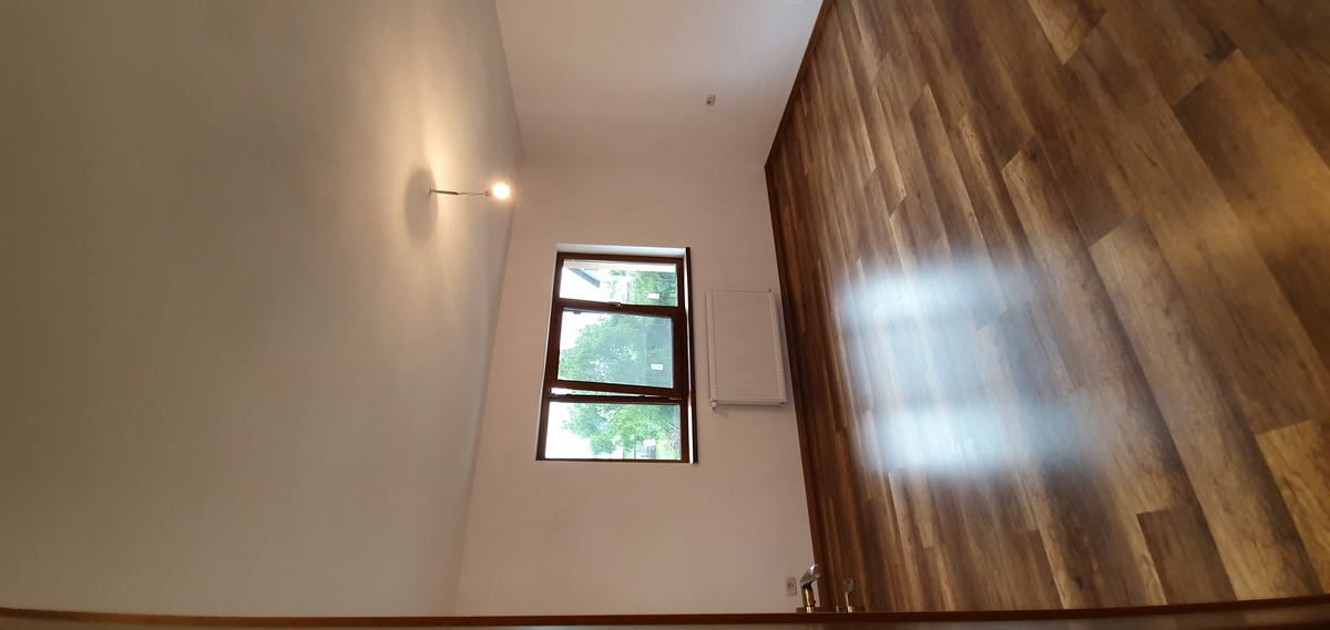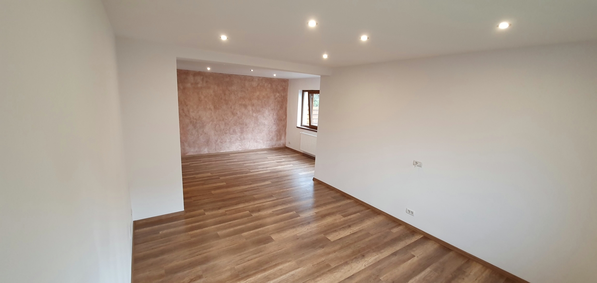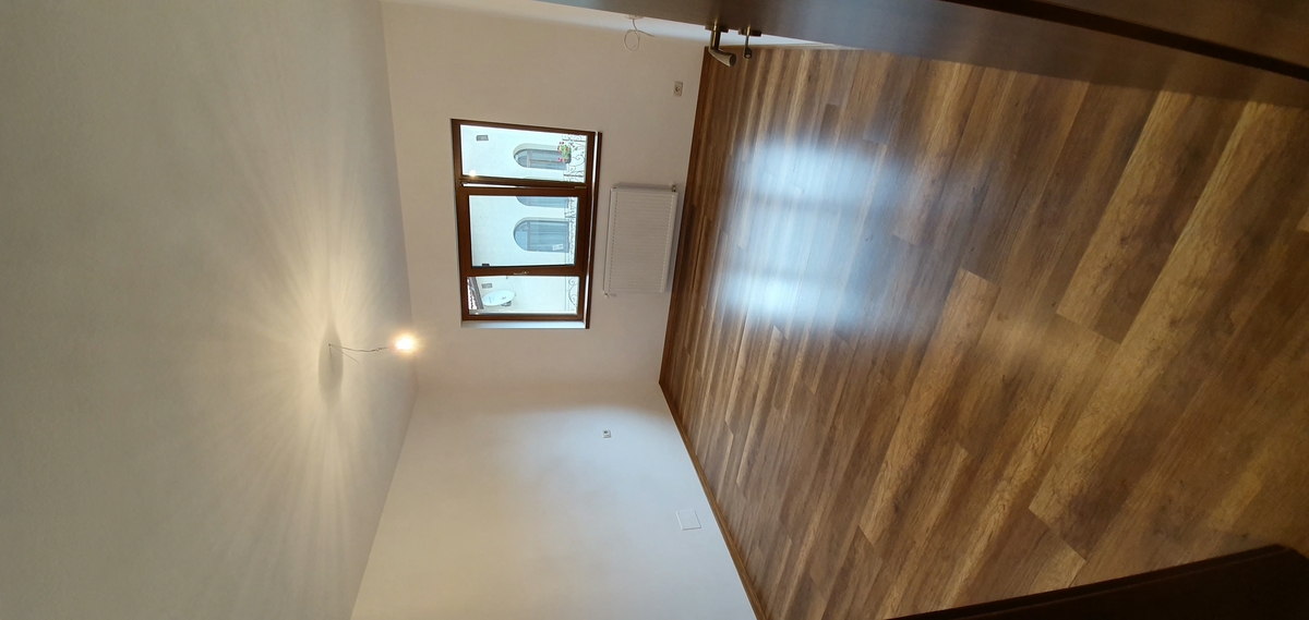 Pereti interiori din caramida tencuiti mecanizat si vopseluri acrilice.