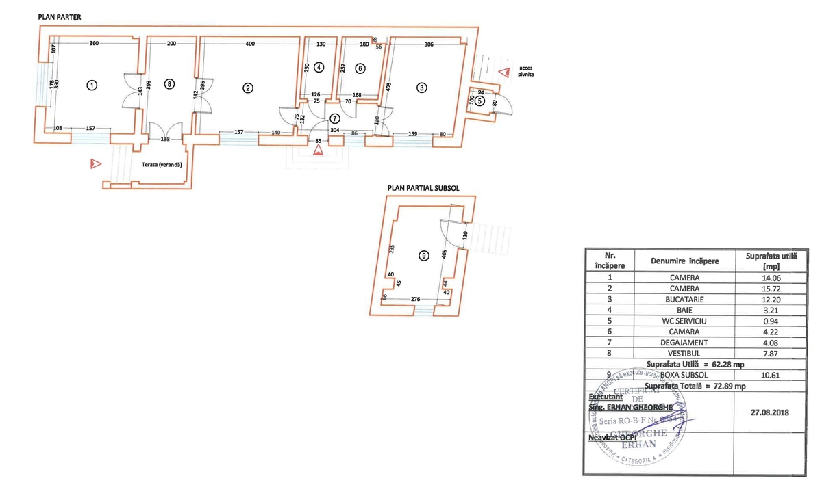 Casa este formata din 2 corpuri de cladire, unul avand 3 camere, bucatarie, baie, pivnita si pod, iar al 2-lea corp cu 2 camere, bucatarie, baie. LIBERA, RENOVATA.