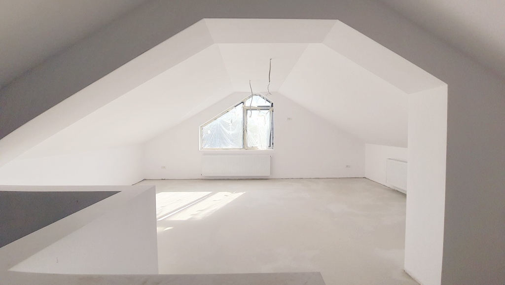 - Pod Mansardat cu o inaltime totala de pana la 320cm cu o suprafata utila de 40mp si optiunea de a avea 2 camere + 1 grup sanitar.