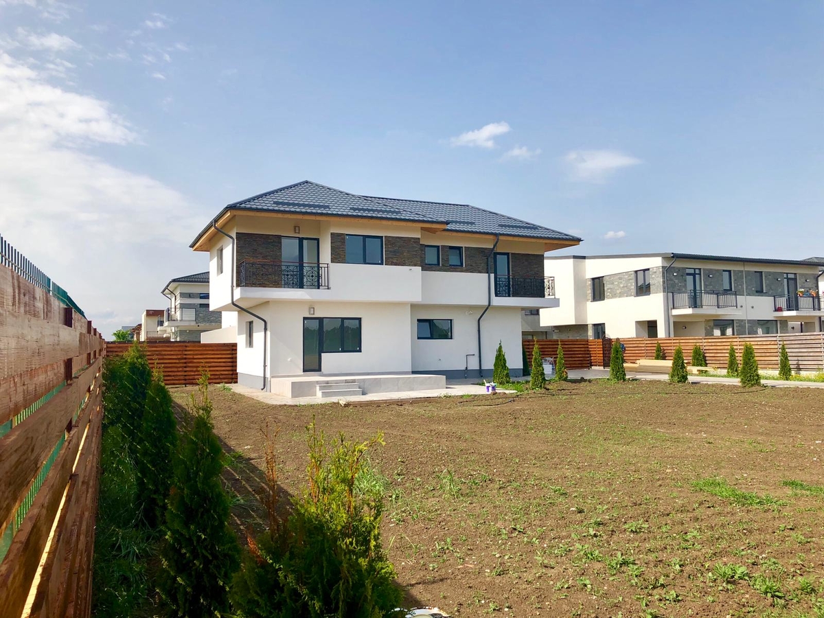 La parter avem living, bucatarie, baie. Casa este decomandata, atat parter cat si etaj, accesul in casa facandu-se din doua parti. Dormitoarele sunt mai mult decat spatioase. Dormitorul matrimonial are baie proprie si balcon, la fel si cel pentru oaspeti. Curtea este superba, are 850 mp si va permite sa o amenajati in functie de planurile si gusturile d-voastra. Finisaje de lux, materiale de calitate!!!