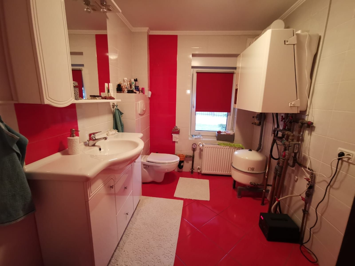 Incalzirea si apa calda se face cu o centrala Buderus de 36 kw si panouri solare (2 bucati). Caloriferele sunt din otel iar tevile sunt din cupru. Panourile solare sunt conectate la un boiler de 300 litri si vara face apa calda.