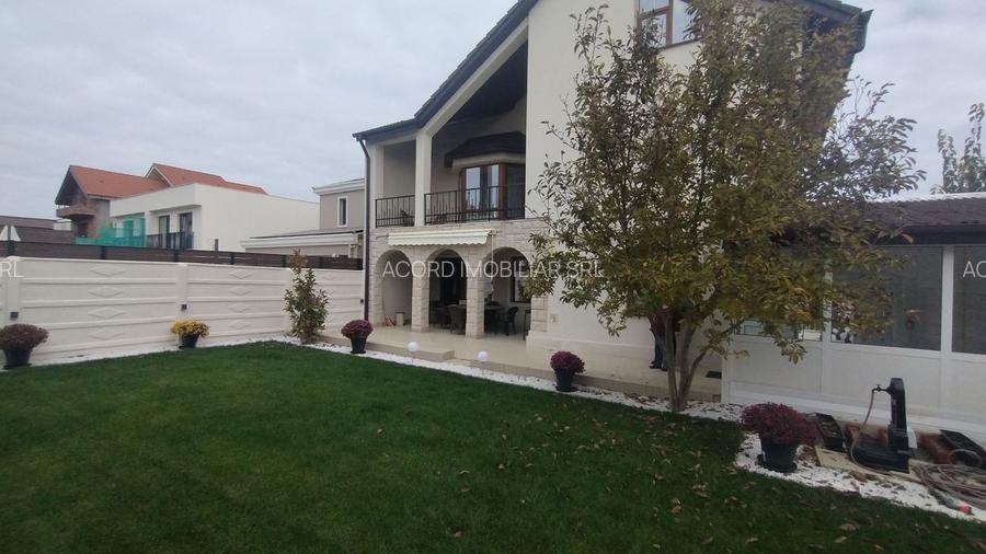 Localizata in cea mai atractiva zona rezidentiala din imprejurimile Constantei, cartierul Ovidiu sud, vila S+P+1+M se remarca prin designul unic(nu mai exista alta la fel in cartier), spatiile generoase, compartimentare de exceptie, luminozitate deosebita, structura de rezistenta solida, superioara normativelor in vigoare(este construita din cadre de beton de 40 cm, si BCA de 38 cm), foarte bine izolata termic oferind un grad de confort ridicat atat vara cat si iarna (izolata la exterior cu polistiren de 10 cm iar la interior cu vata minerala) cu costuri reduse la gaze si energie.(punem la dispozitie facturile la utilitati pentru confirmare). Vila a fost construita in 2004, renovata 2016(schimbat instalatii electrice, sanitare) si 2024. Situata pe un teren de 473 m2 (front stradal 14 ml) cu o arie construita de 144 m2, suprafata construita 407 m2, suprafata utila 306 m2 la care se adauga un garaj de 16 m2 si o bucatarie de vara de 10 m2, are o curte libera generoasa de 329 m2, din care 160 m2 in fata vilei si 169 m2 in spate, zona de intimitate, ambele spatii cu gradina amenajata cu mult bun gust. Pozitionata la 150 de metri de lacul Siutghiol nu prezinta riscul infiltrarii apei datorat panzei freatice ridicate. La 5 minute de mers pe jos va puteti delecta cu o plimbare pe faleza amenajata si zona de interes Castrul Roman. Pana la intrarea in Constanta sunt 6 km. . Magazinele Kaufland 2.4 km si Profi, Penny la 2.2 km. Centrul comercial TOM la 4 km. In apropiere sunt Spitalul OCH 1.5 km, Liceul international de informatica 1.5 km, Scoala gimnaziala Spectrum 1.5 km, Universitatea Ovidiu la 6.5 km.