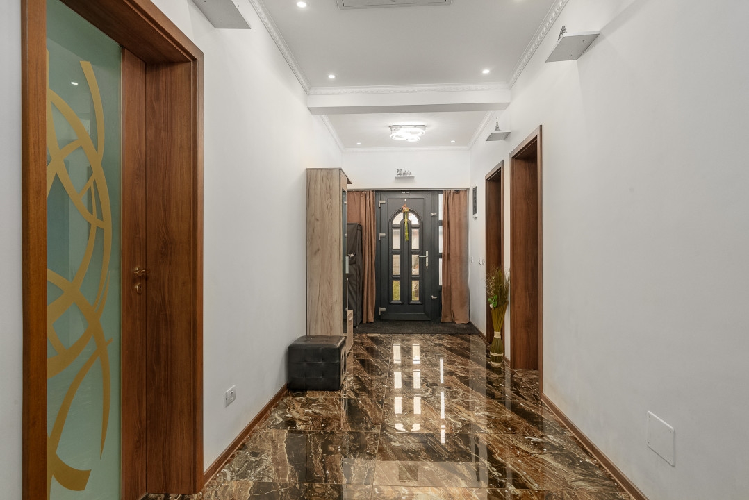In casa sunt multe lucruri care ies in evidenta. Cum ar fi tocaria interioara si usile mari. Pentru ca la o casa asa de inalta, nu poti pune orice usi. Trebuie pastrate proportiile.