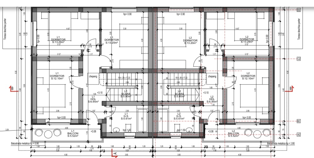 Etaj: Dormitor 1- 13.29 mp, Dormitor 2- 13.20 mp, Dormitor 3 - 12.10, Baie 5,61 mp