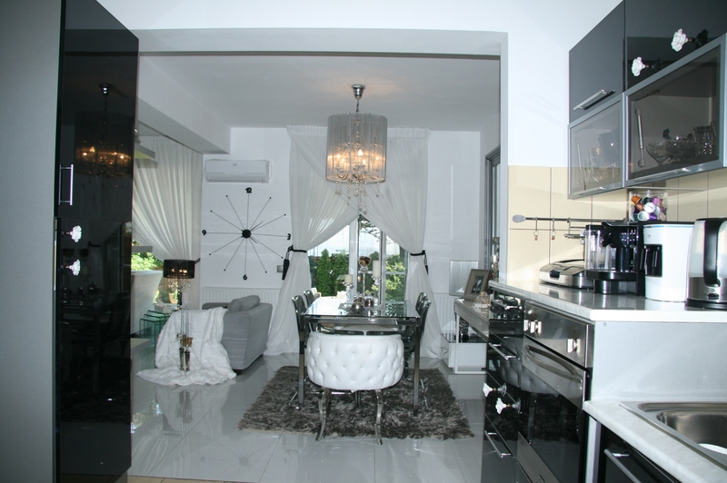 - Parter : 1 living spatios si luminos, zona de relaxare si dining cu bucataria mobilata si utilata complet, baie, hol iar in spatele casei o gradina cu terasa exceptionala .