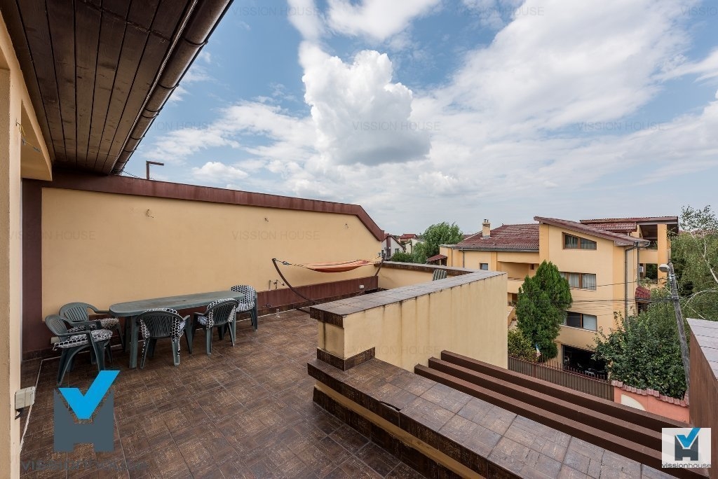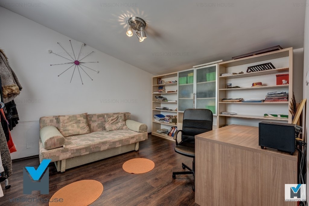 Mansarda are o zona pe care o putem folosi ca hobby room cu acces catre o terasa de 30mp, si un birou.