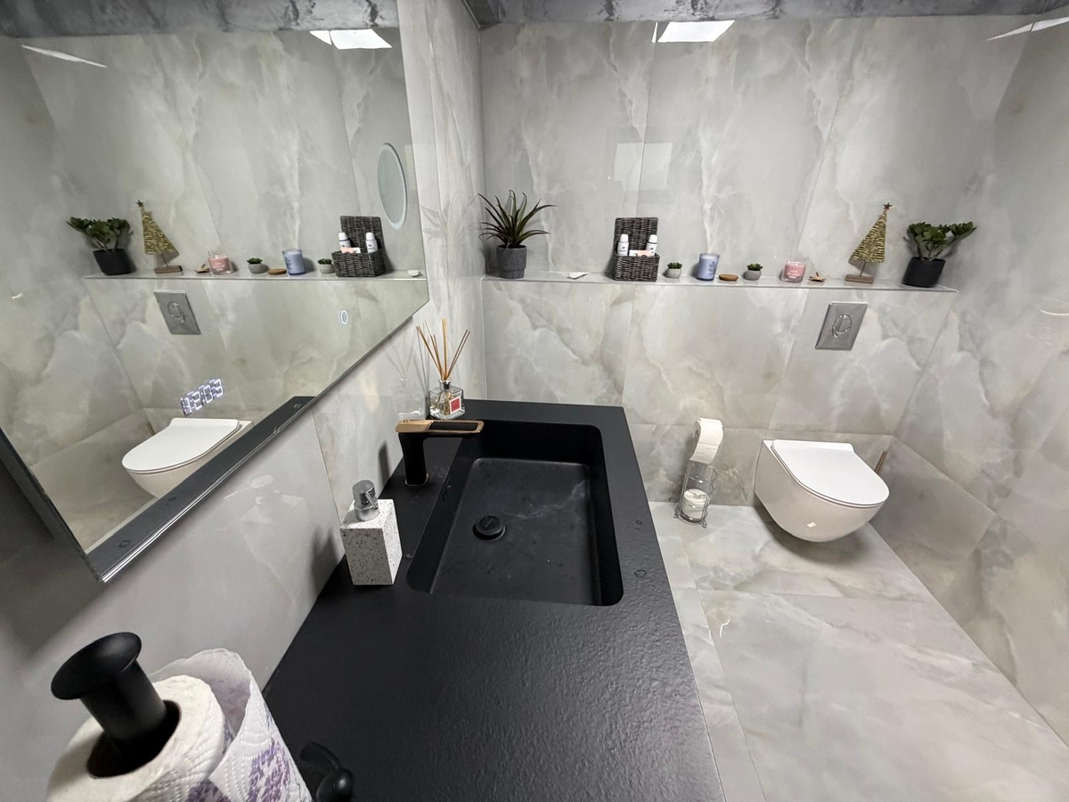 • Finisaje premium: granit si travertin