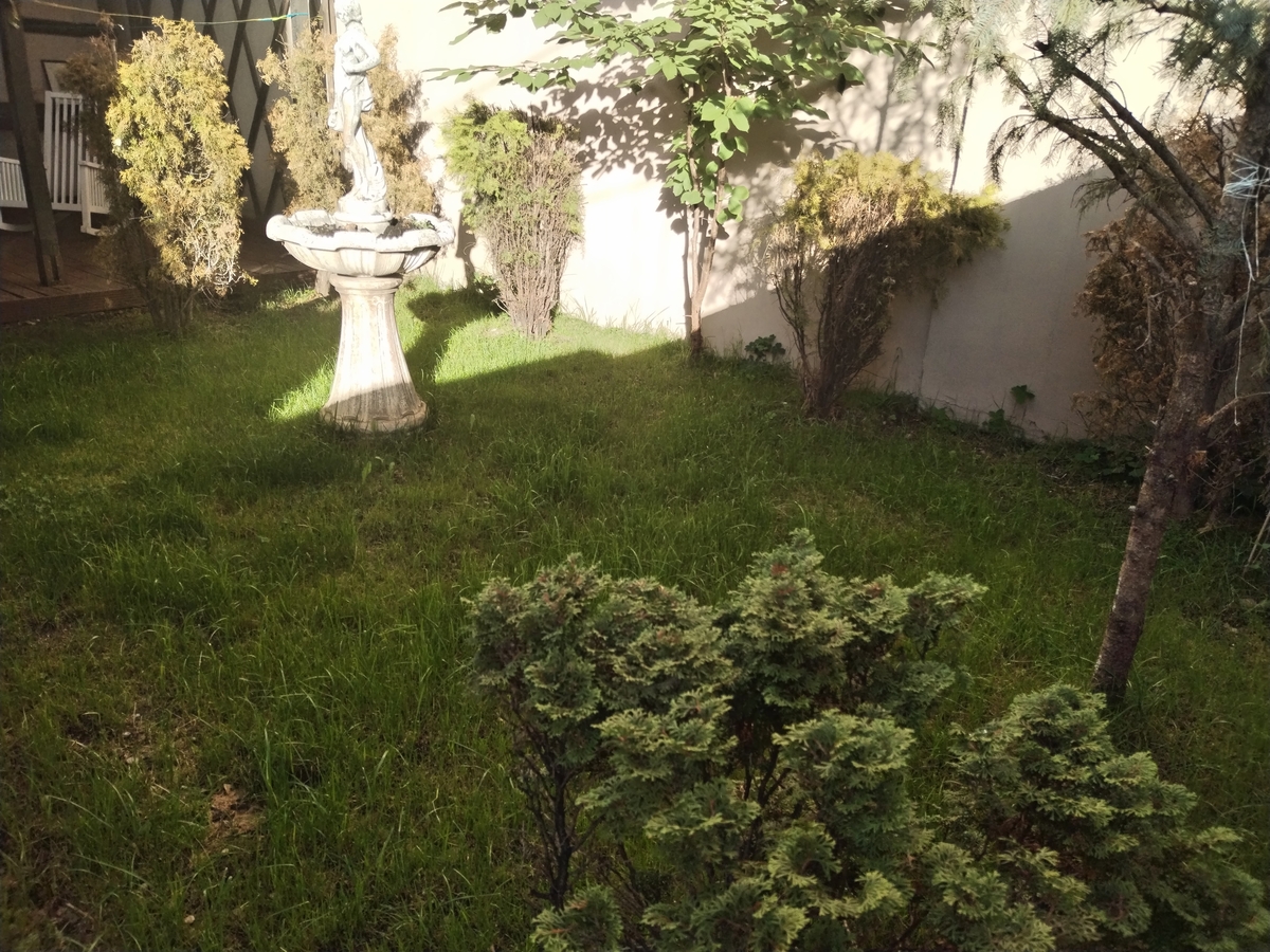 Curtea are spatiu mare cu gazon , acesta se poate transforma usor in locuri de parcare.
