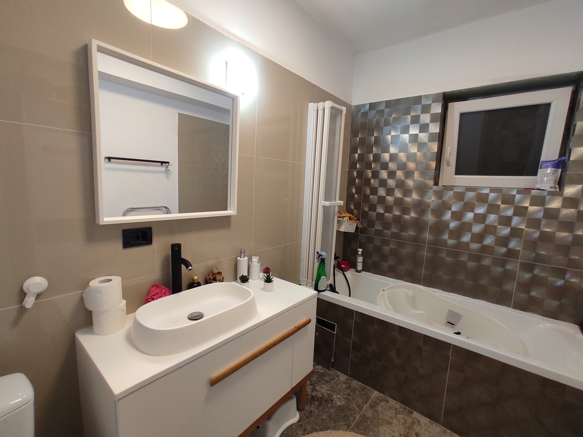 - etaj: 3 dormitoare din care cel matrimonial care are propriul dressing mobilat (o incapere separata de dormitor), o baie cu cada, acces la pod prin chipeng (doar pentru depozitare).