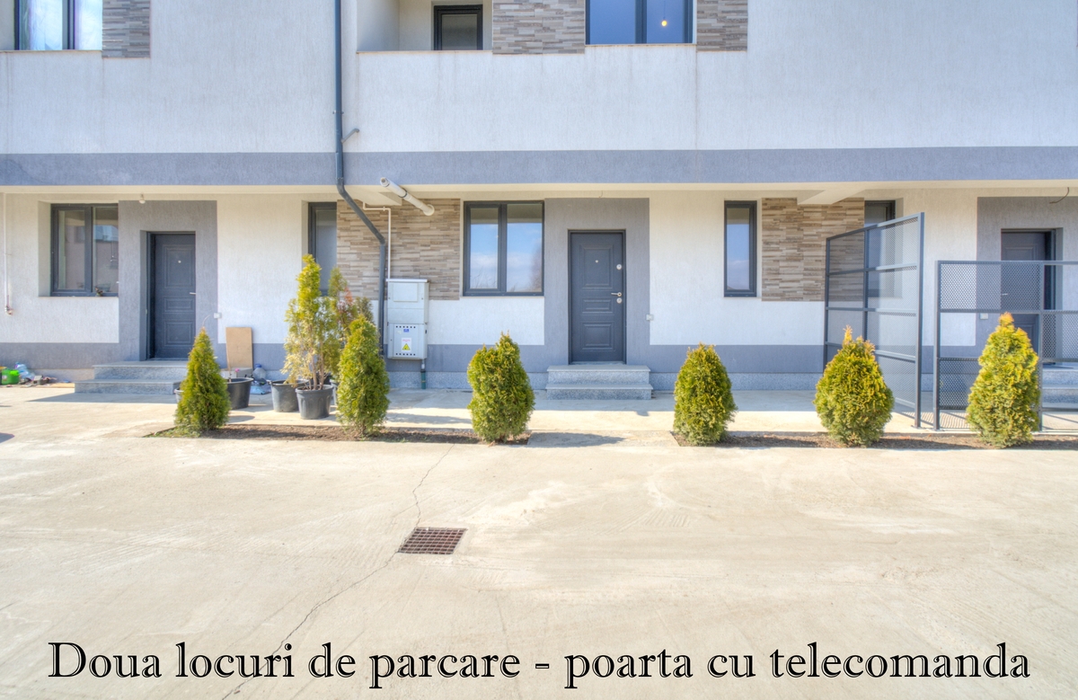 Gardul este construit din beton iar poarta este din fier forjat si se deschide pe telecomanda.