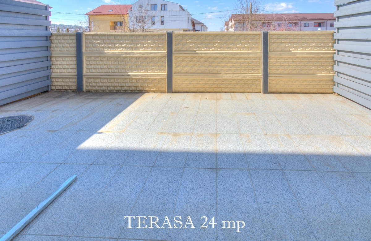 Terasa din spatele casei este inchisa si masoara 24 m2.