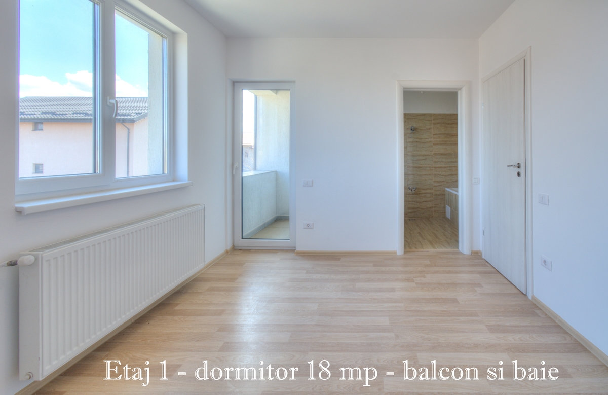 Etaj: dormitor matrimonial cu baie propie: 18m2, dormitor de 16m2, dormitor de 14 m2 si o baie cu cada de 5,4 m2.