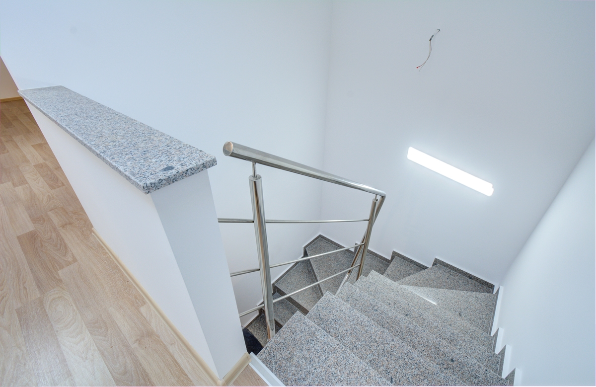 Calorifere de otel, gresie, faianta, parchet, scarile interioare sunt invelite in granit gri, balustrade din inox, usi interioare casa bella, usa de la intrare este metalica bine izolata marca Mega (Germania).