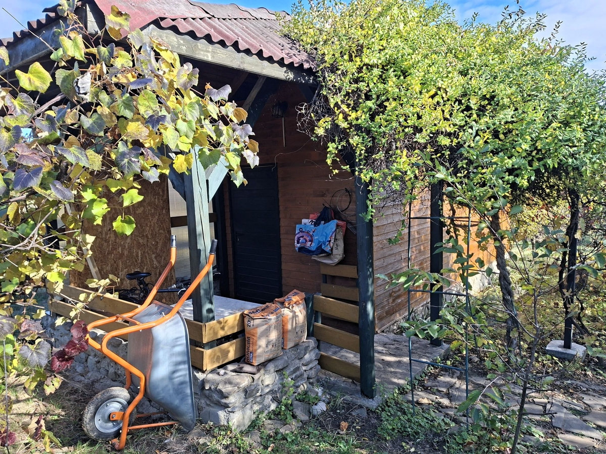 In curte si-au gasit folosinta 3 containere, unul e bucatarie complet mobilata si utilata, unul e magazie de unelte iar unul e spatiul gratarului acoperit si al povestilor spuse cat troznesc lemnele in foc. Tot in curte se mai gasesc o fantana si camin de apa, un grajd cu fanar si un WC.