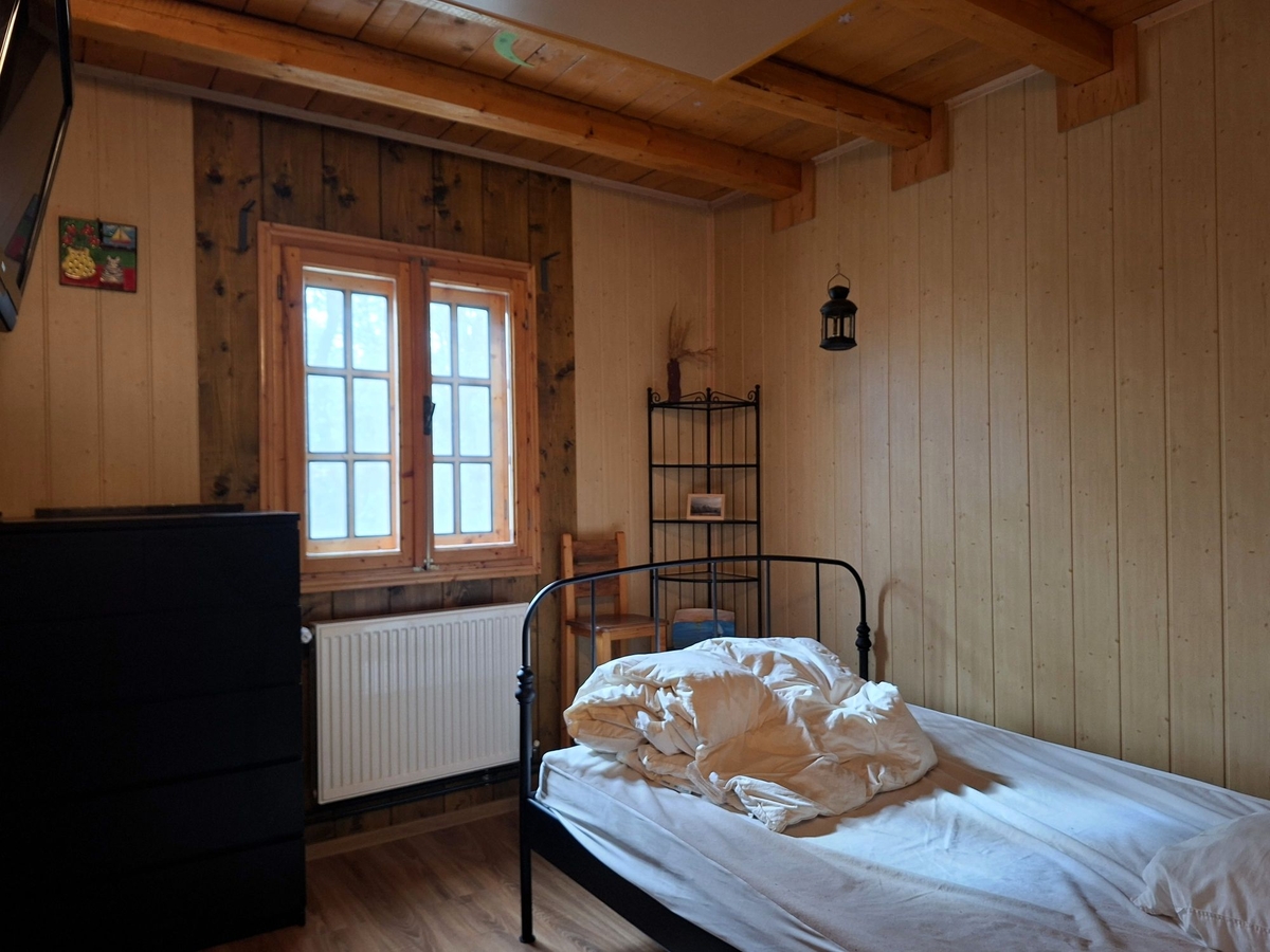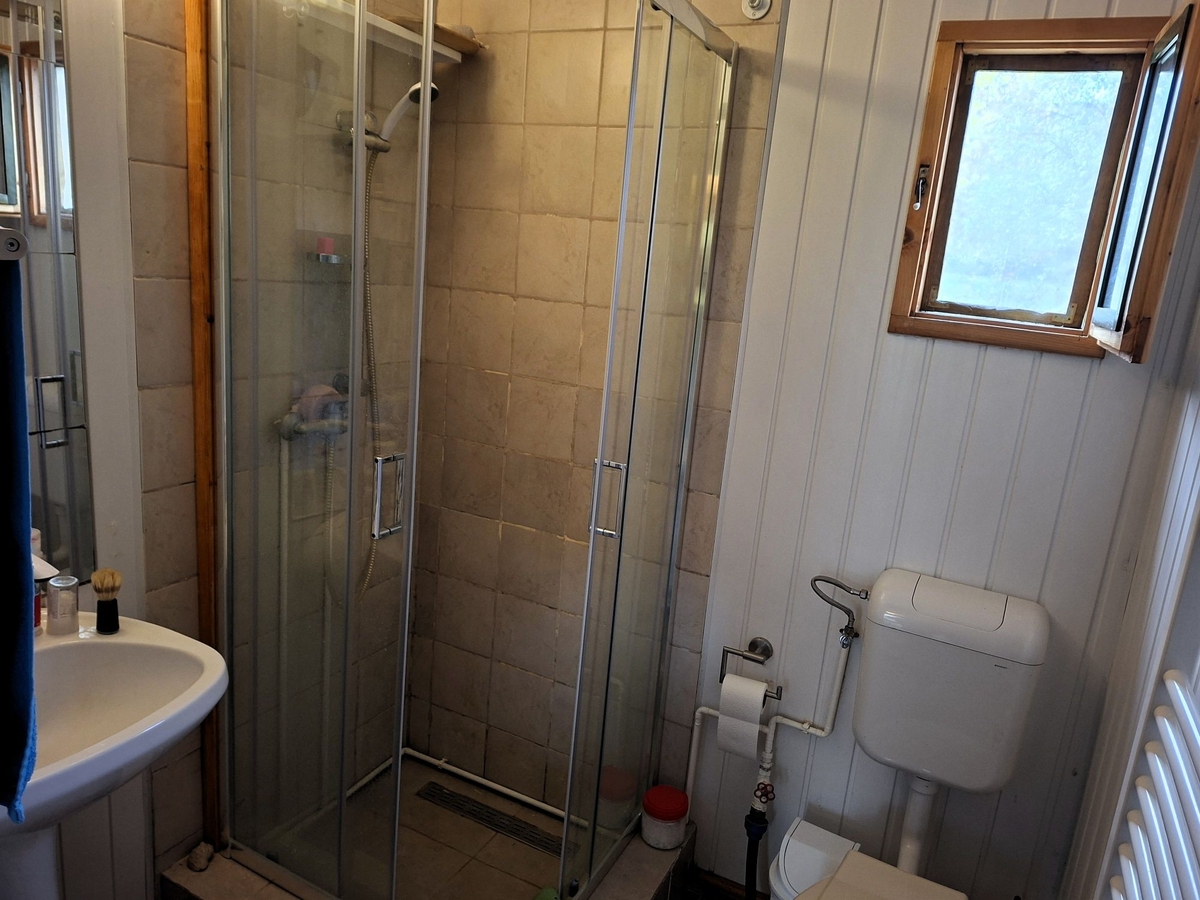 Incalzirea se face cu centrala electrica si cu panouri radiante, exista intalatie de colectare a apei, instalatie de purificare a apei, fosa septica. Dispune de curent trifazic si de o instalatie de panouri solare de 6,3 kW montata acum 2 ani.