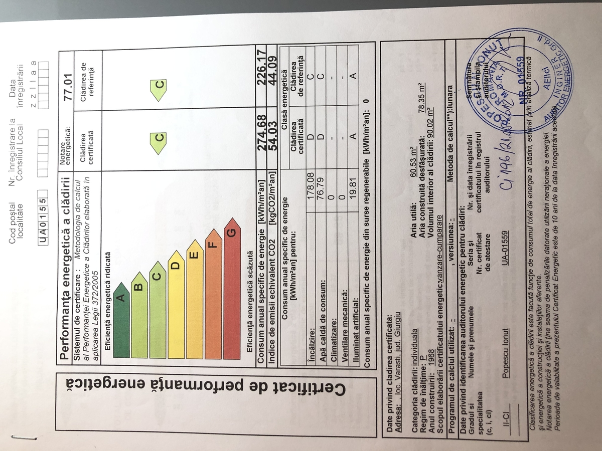 1 living, 1 buc, 1 baie - suprafata 78 mp.