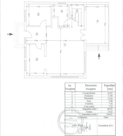 - parter : living dormitor / birou, bucatarie , baie, terasa acoperita, bucatarie de vara (foisor) cu gratar caramida, garaj , camera tehnica.