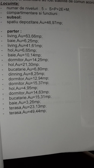 Vila super,ultra spatioasa,formata practic din 3 corpuri cu intrari separate cu trei scari interioare iar corpurile sunt lipite si unite intre ele cu terase la fiecare nivel decomandate total.Acoperisul cu o forma complexa din tabla profilata verde si sindrila bituminoasa in forma de solz de peste cu panta franta si toate pantele inegale are un stil arhitectural deosebit folosit la acoperisurile din S.U.A ce se potrivesc versiuni clasic,baroc romantic.Locuinta este formata din 5 nivele:S+P+2E+M Astfel:ST=2140mp SC ampreta=375,80mp, SD=1131,62mp, SU=952,48mp, Hmax=12.67ml,In pozele atasate se vede fiecare nivel din ce este compus.Mansardele in numar de trei sunt:1=85mp,2=40mp,3=71mp si aceasta de a treia este pe 2 nivele.Terenul este in jur de 5000mp cu gradina,pomni fructiferi pe rod de 8 ani peste 100 de bucati si vie altoita pe rod 600 de but.cu soiuri de masa si de vin.Incalzirea se face cu 2 centrale termice de 50 kw,lemne si peleti.Pret negociabil si variante plus bani.
