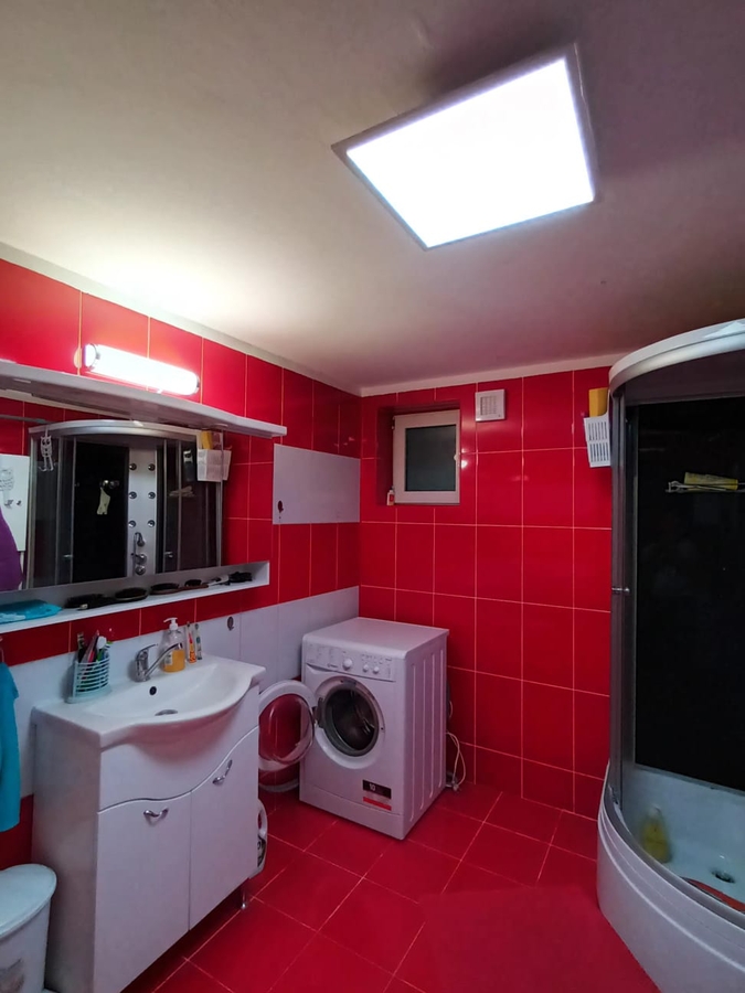 Casa este tip stil vagon, cu hol lung si foarte luminos, inchis cu geamuri termopan mari.