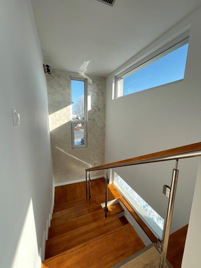 Imobilul beneficieaza de finisaje si dotari de calitate cum ar fi sistem de ventilatie incorporat in tavane pentru aer rece si aer cald cu automatizare independenta pentru fiecare etaj, termostastat de ambient wireless pentru centrala, centrala termica noua marca Romstal, gresie/ faianta/ parchet de calitate superioara (Spania/ Italia), toalete incorporate marca Roca, mobilier bai executate pe comanda, baterii termostatate la cada si la dus, usi interior Pinum, supraveghere video, s.a.m.d.